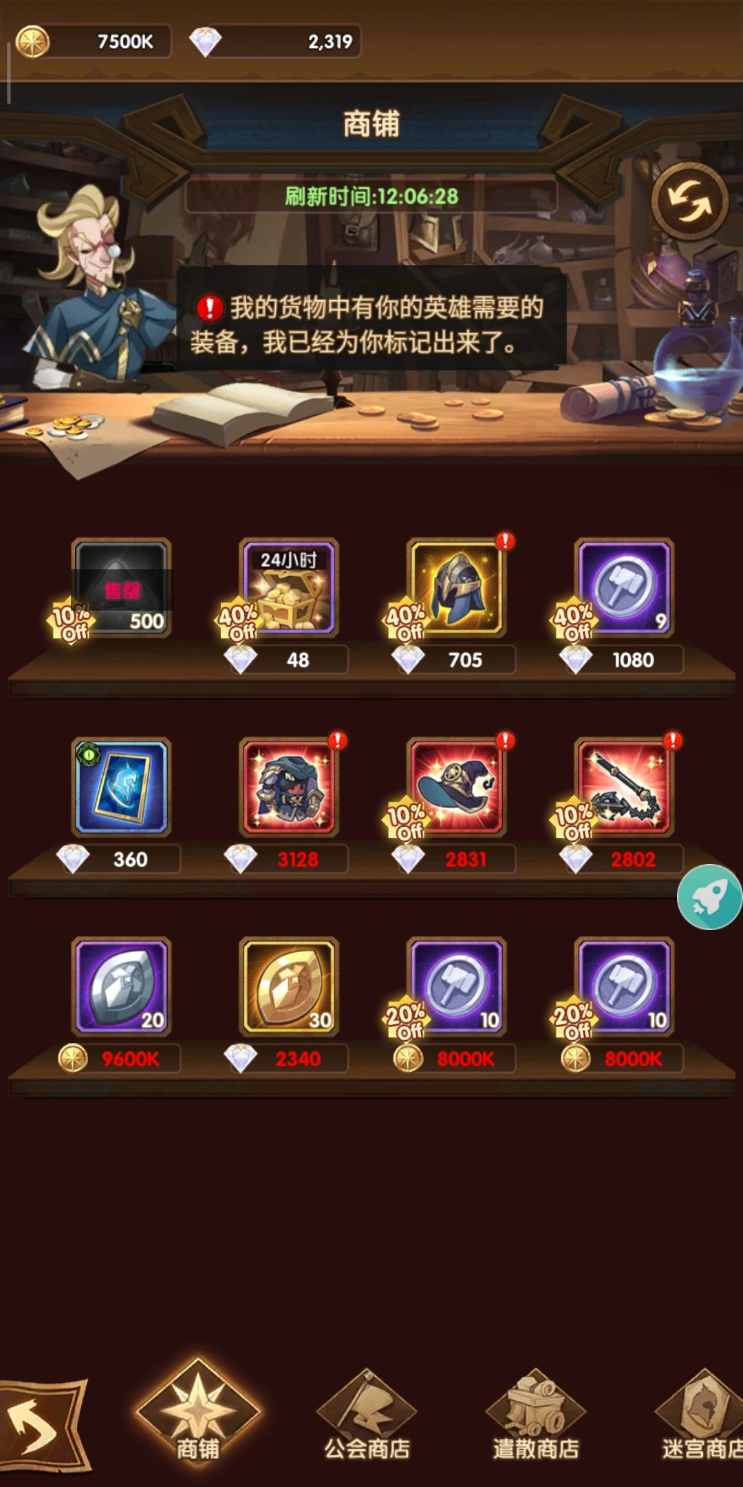 商铺中可用钻石购买的紫色英雄碎片必买,其他的金币、经验资源根据需求情况合理购买,装备及进阶石头强烈建议不要购买。(可以白嫖的物品都不要购买,这是抽卡的游戏,钻石不用来抽卡是没有灵魂的)