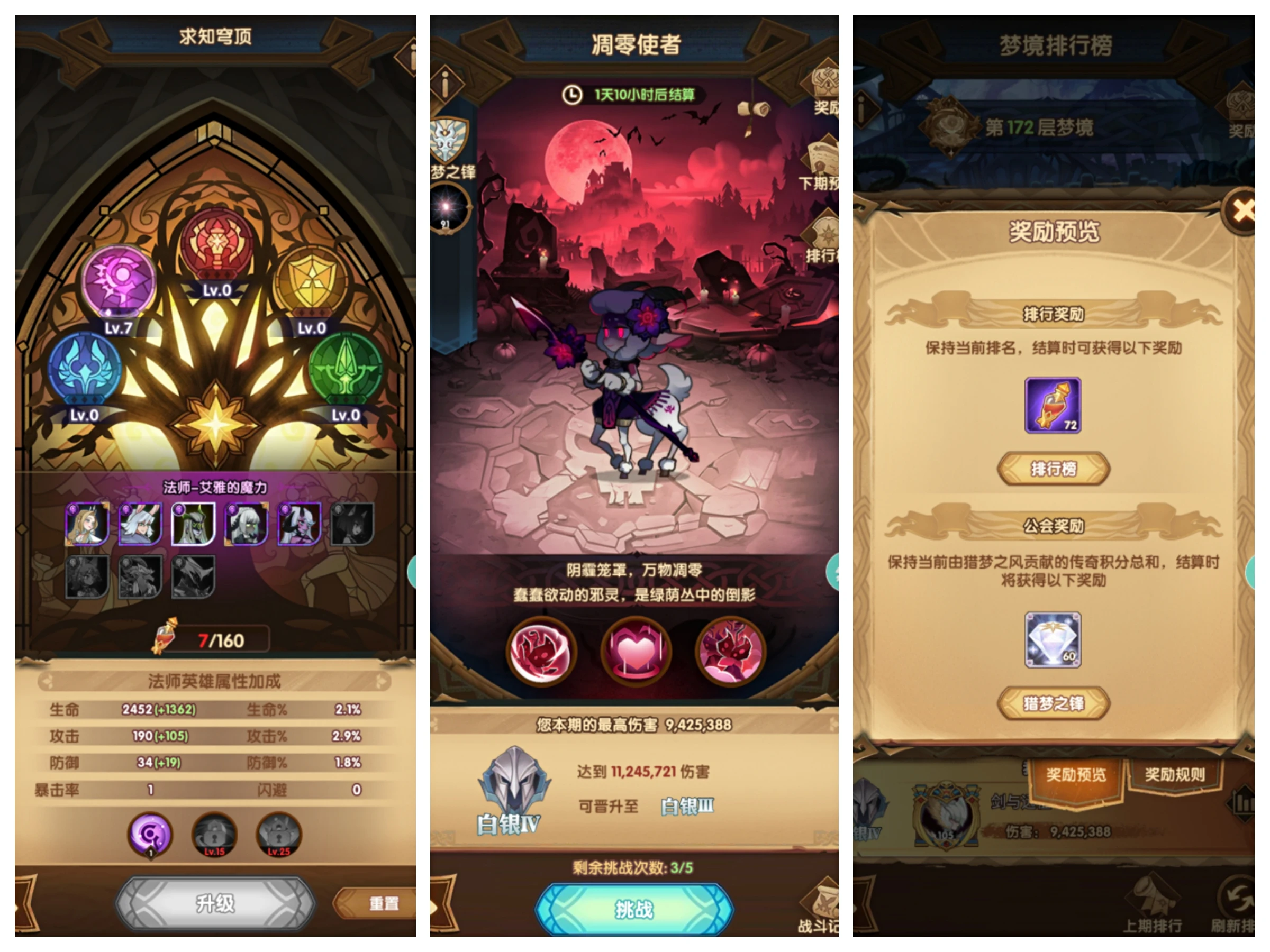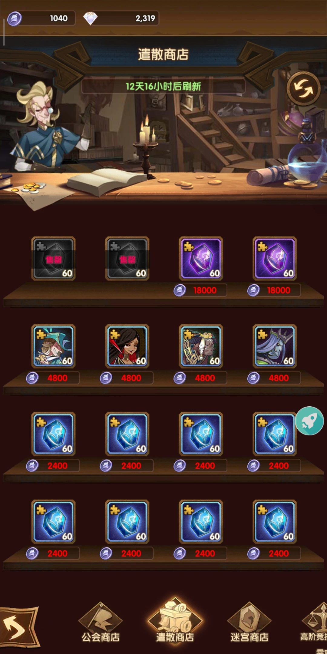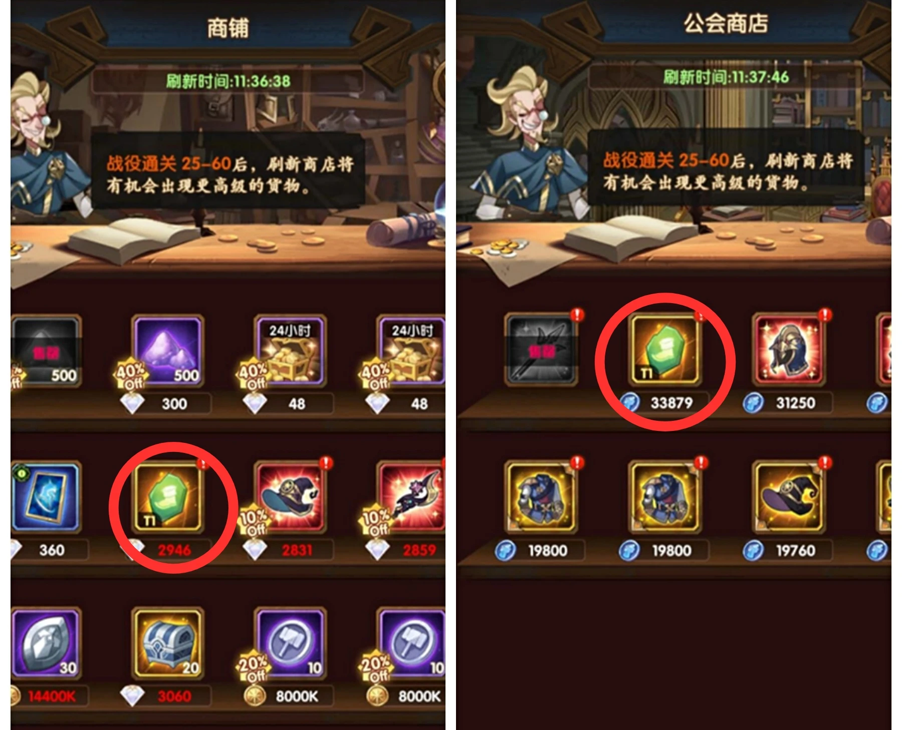 咒印的挂机获取在通关20-60后挂机掉落,同时在商铺与工会商店(通关21-1)中会出售,这里建议不买商铺出售的咒印,理由请参考钻石篇,通过积攒工会币来购买咒印比较划算。同时在爬种族塔时,也会有任务奖励,但对于总体需求来说,只能说是聊胜于无