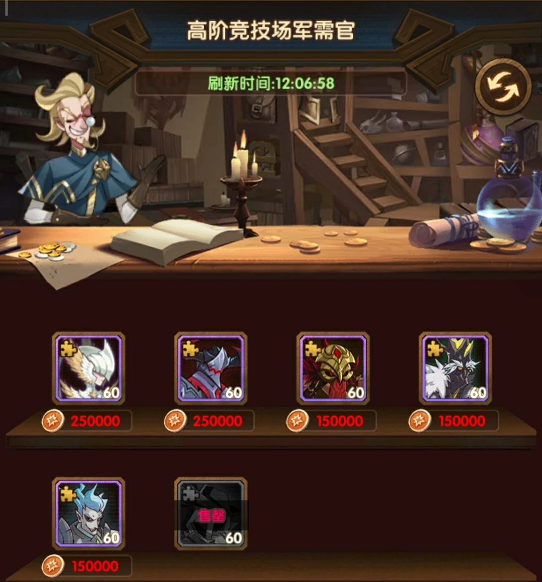 ⑥角斗士硬币:高阶竞技场挂机产出,可以换指定神话级别英雄(包括神魔类英雄)。