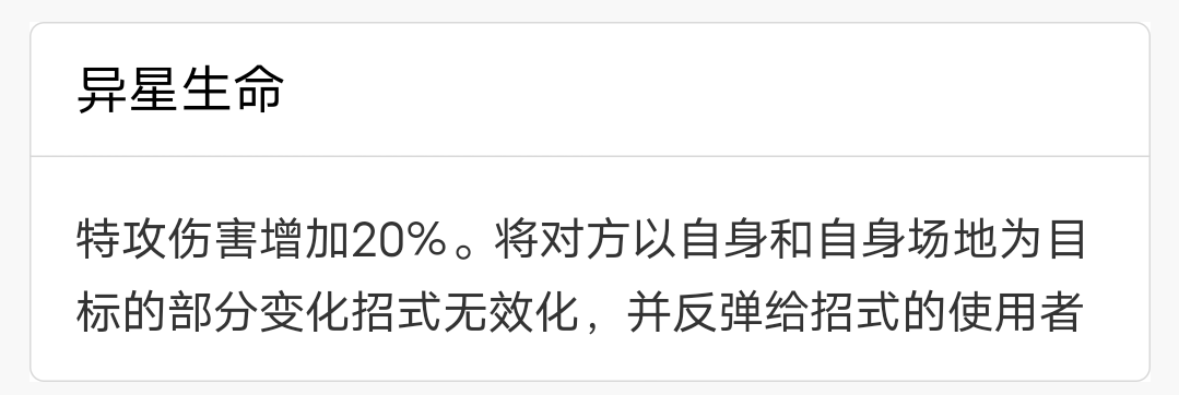 我只想说,现在超能属性实在是太差劲了,连外星人这个形态都抛弃了超能属性,然后变成了幽灵属性,总的来说吧,这个外星人的速度应该是t1级别的和苍响是一样的速度,如果这两个精灵面对面的话,基本上就要拼速度了,谁的速度快谁就赢了。伤害方面的话,基本上不用多说,还差一点就200种族值了(还不如原来的😂)更关键的是,这个精灵的新特性也是相当的夸张,专门针对索罗亚的,而且自己也有一定的防御能力了,不过这个防御能力只能展现在一种情况下