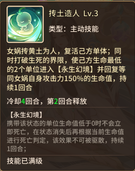 女娲的延迟死亡对高速队伍来说完全没有意义,己方英雄虽然被女娲套上了buff,血条变成了红色,有些人会疑惑,为什么有时候回合结束我的英雄还是死了?