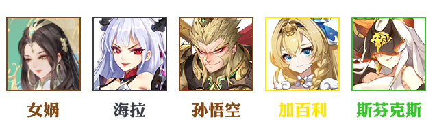 女娲、海拉、孙悟空、加百列、斯芬克斯