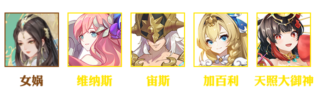 女娲、维纳斯、天照大御神、宙斯、加百列