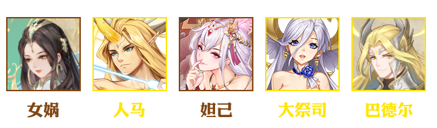 女娲、人马、妲己、大祭司、巴德尔