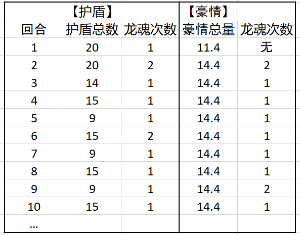 下图为更新后的 龙魂频率(设定和上贴中一样)显然郭嘉羁绊的龙魂次数 有了明显降低(后续在阵容里会详细分析)
