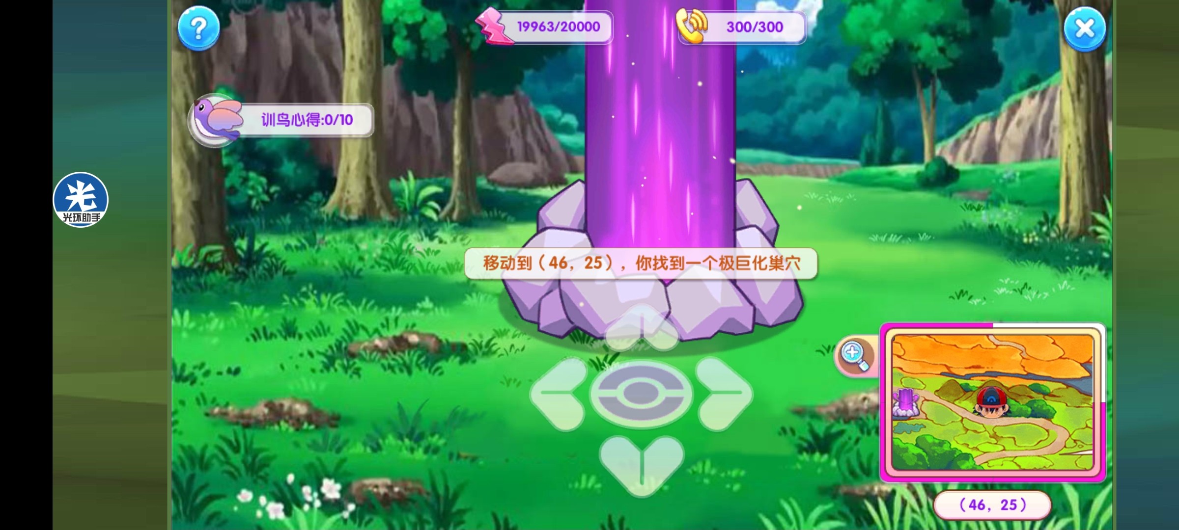 紫色的地方,移动到就能发现极巨巢穴,里面随机产出极巨精灵。