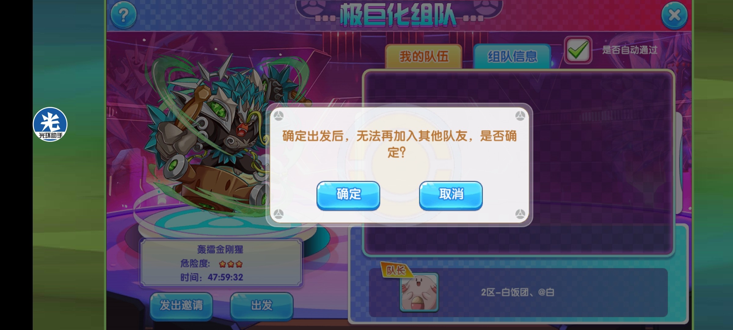 然后试了下组队功能,因为没有别人,所以两个号自己组队,加入其他玩家的队伍,需要消耗1格手机电量( ps:是游戏内手机电量,相当于特殊体力),加入团队后,挑战首领中的队友也会增加。