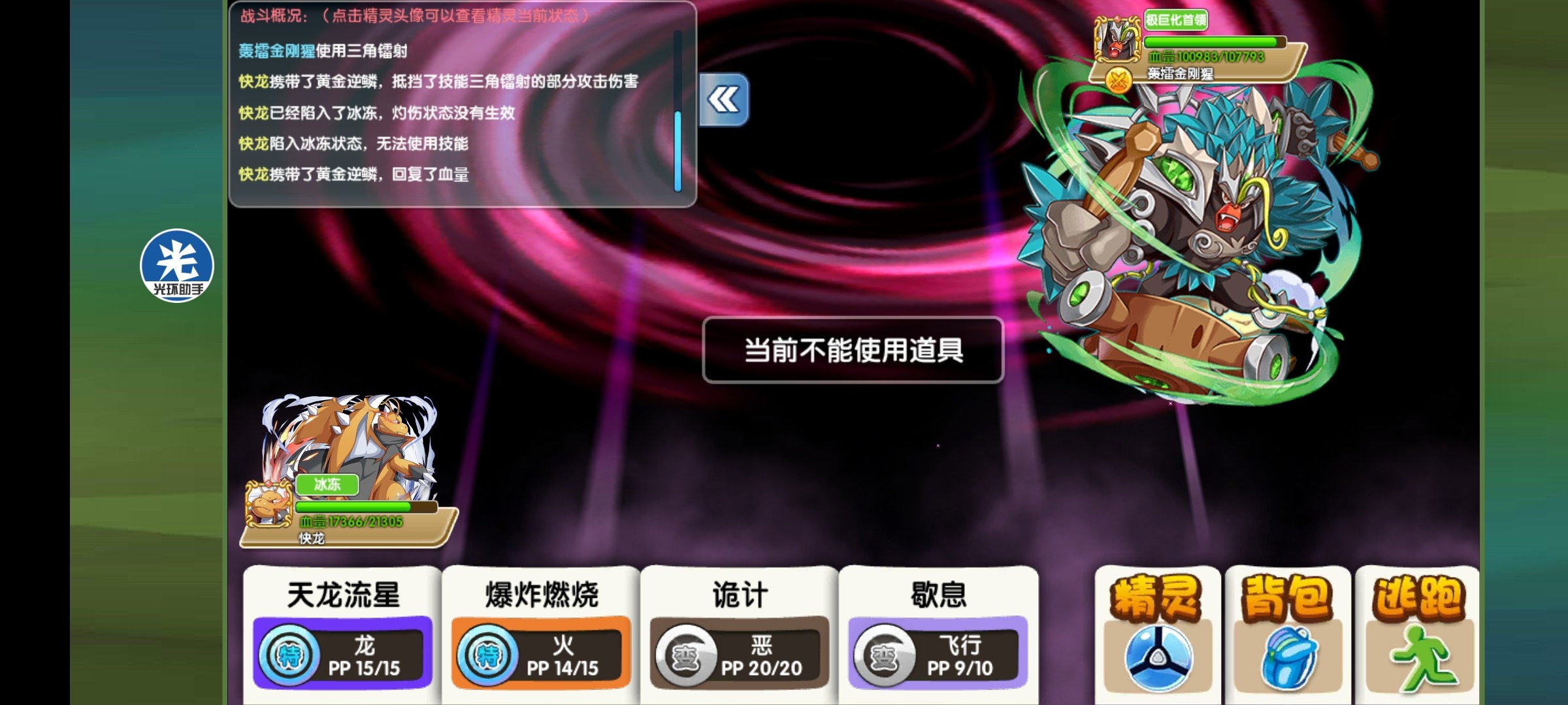 经过实验,对战中,我方精灵不能使用巨大化能力和超级Z招式,这里我用毒龙实验了下。