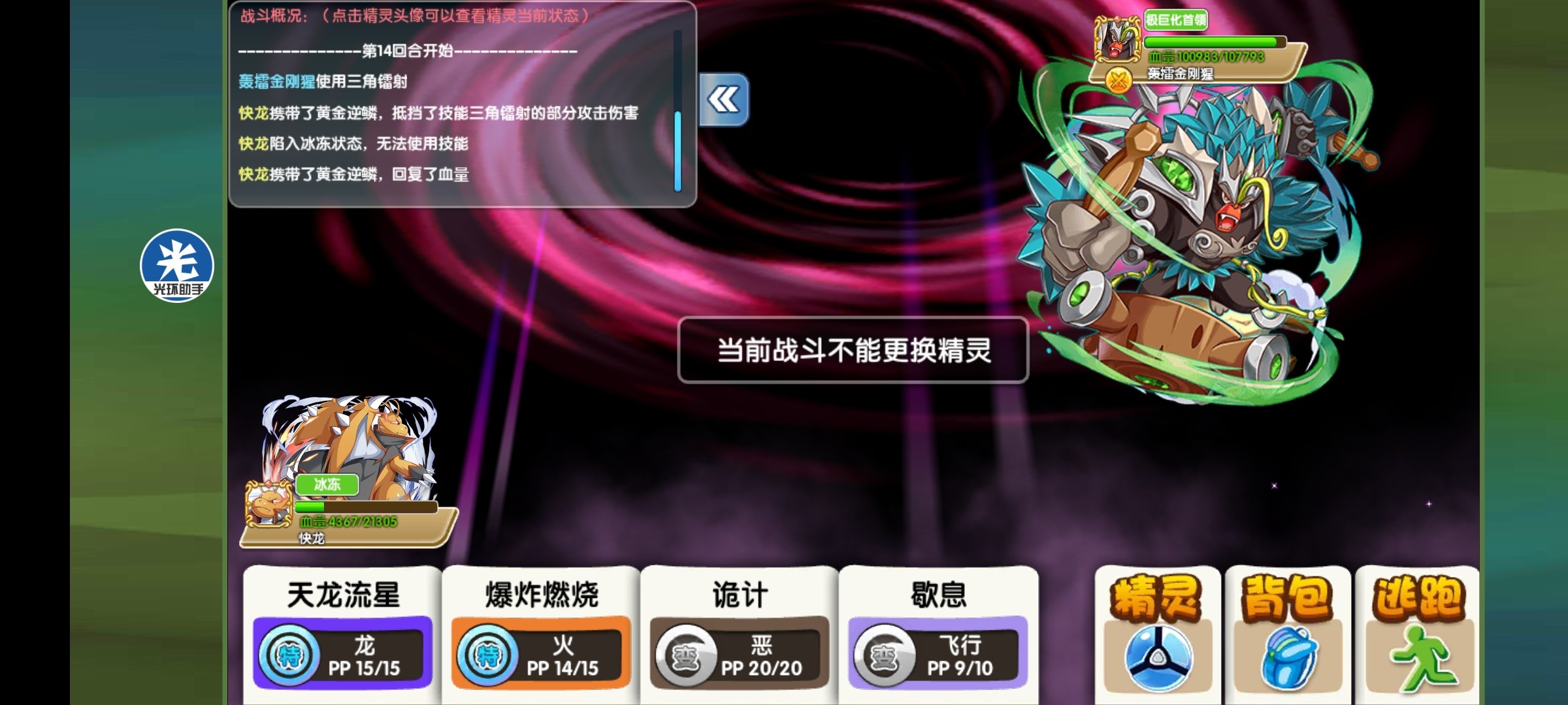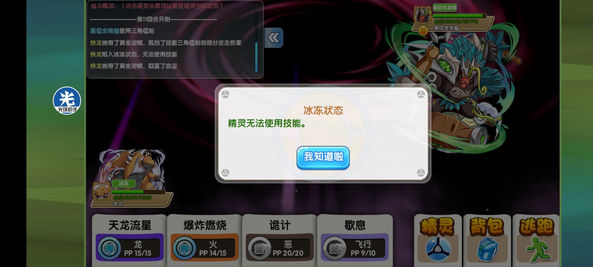 这里遭遇轰雷金刚猩,我方使用新快龙,注意,只能选择背包一只精灵,看技能还是克制的。