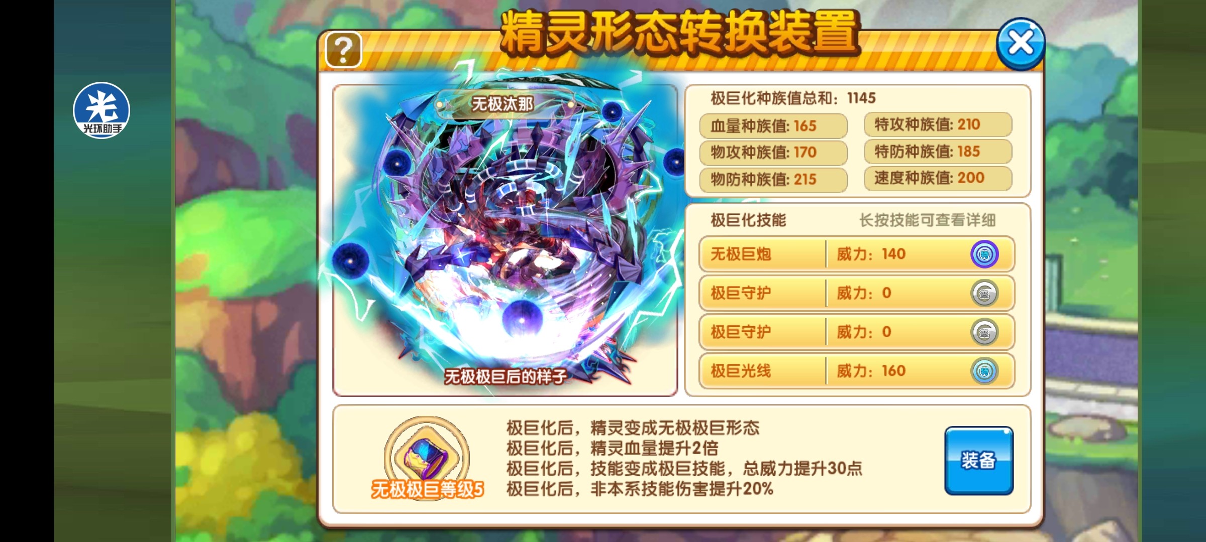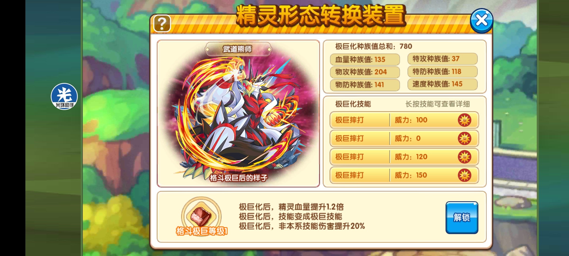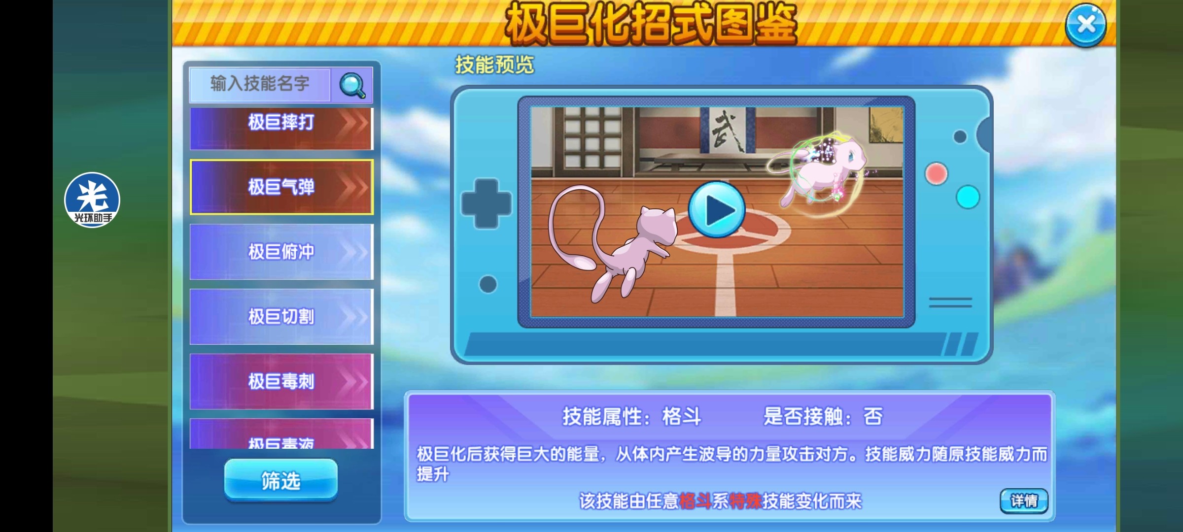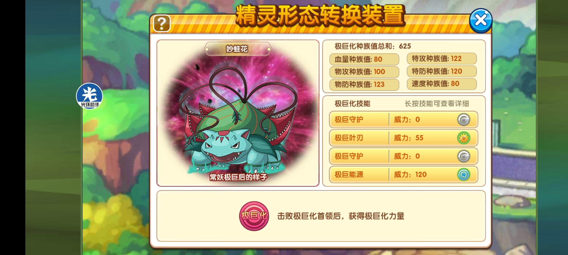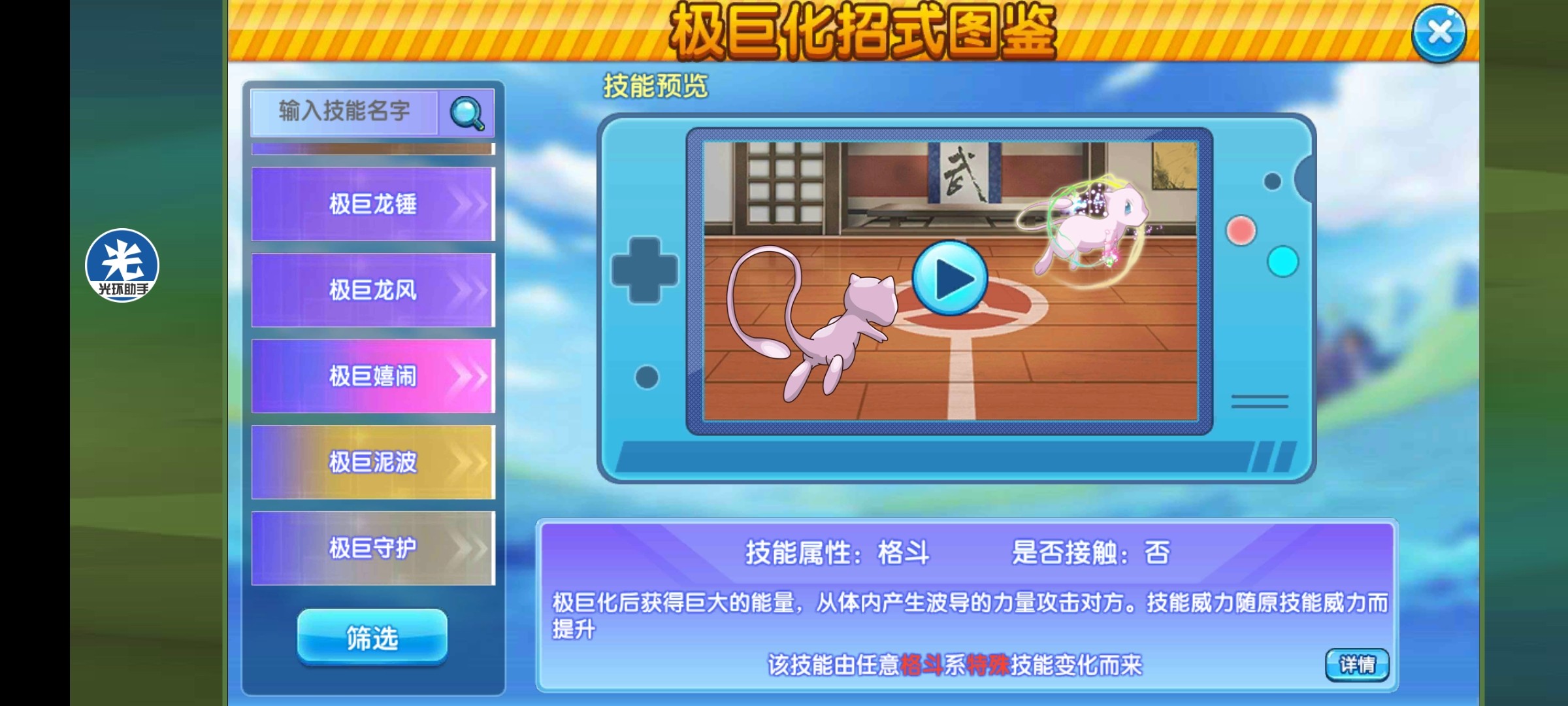 对战中,玩家选择极巨化按钮时,需要再选择极巨化技能,才会使出极巨化,这里说下极巨化技能。