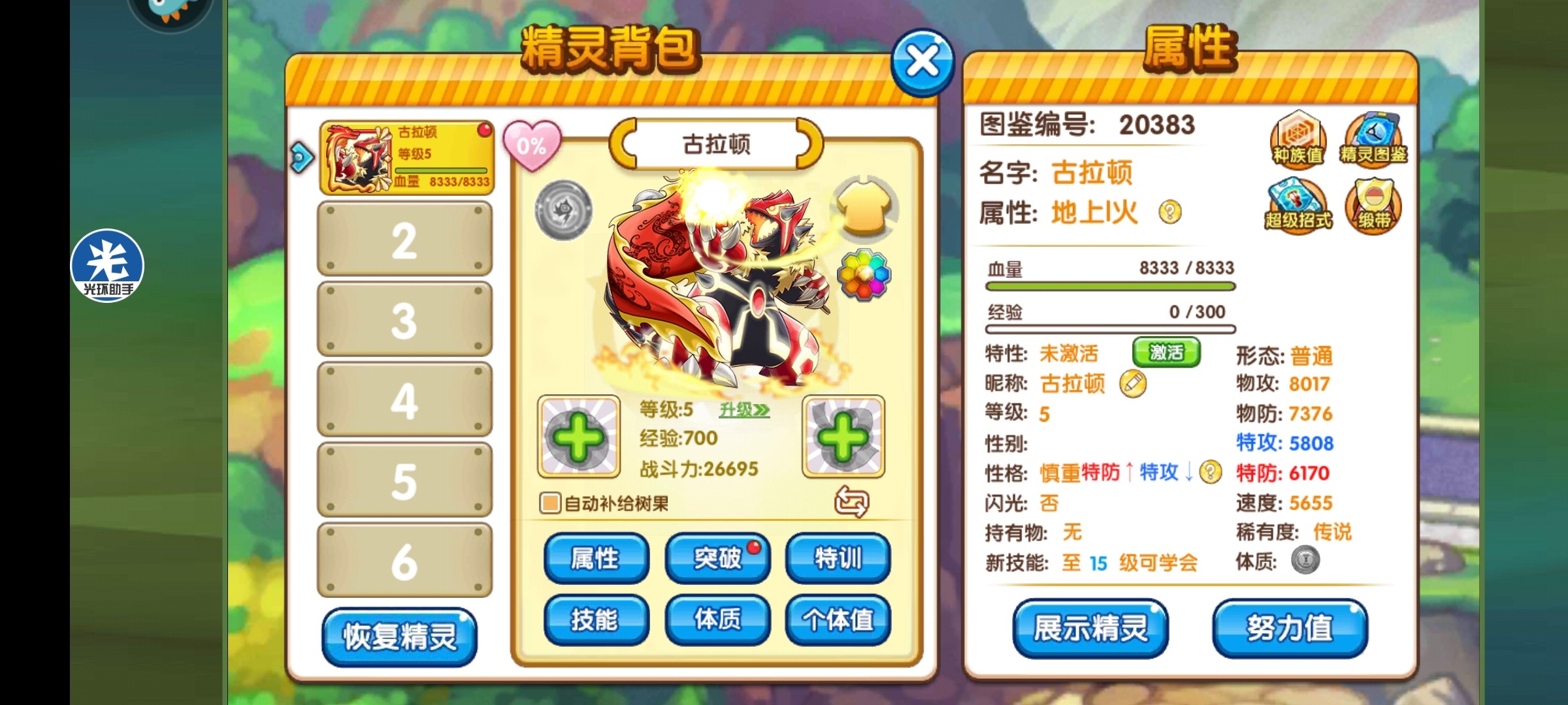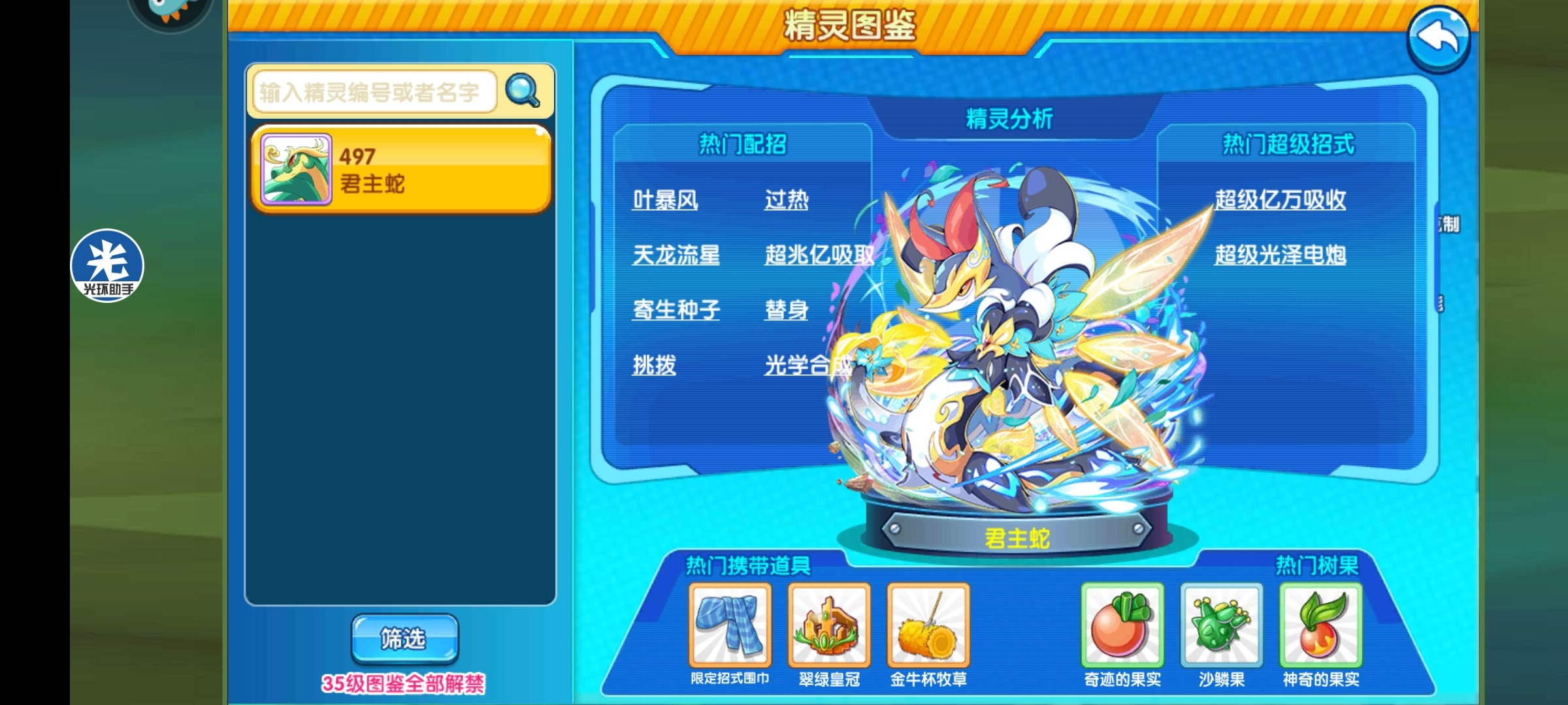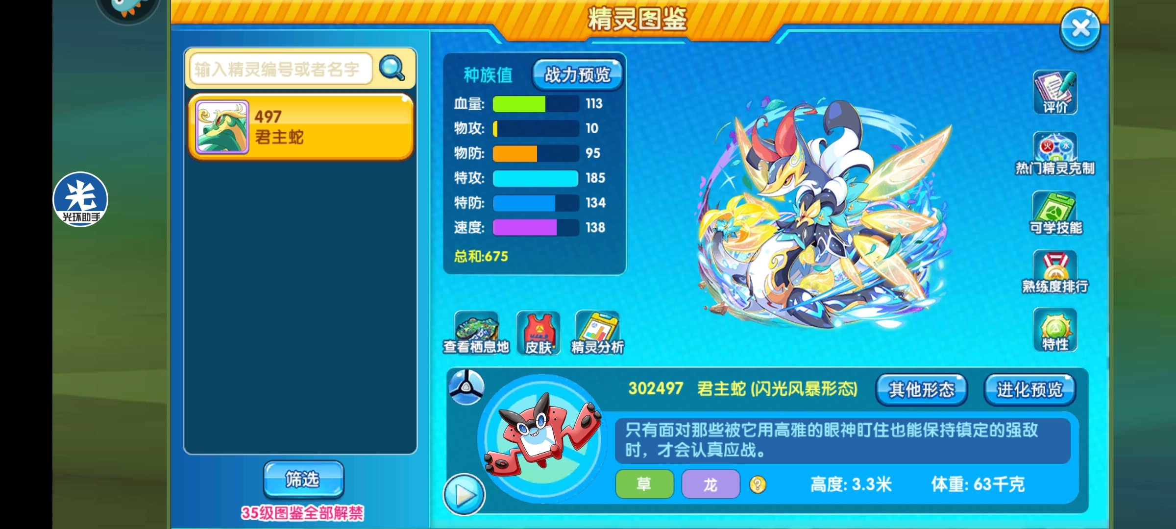 从图中可以看出君主蛇(风暴形态)的亮点在于速度和特攻,以及不错的血量。因此性格推荐为胆小、保守,努力值速度特攻。