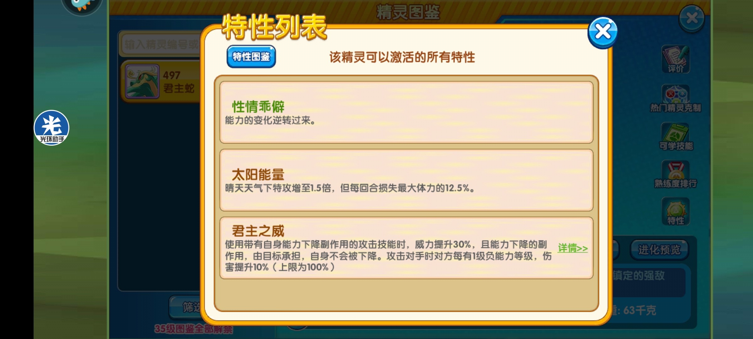君主之威是新特性,能使具有副作用的技能伤害增加百分之30,且副作用由对方承担。配合这两个个特性,君主蛇可以学叶暴风,天龙流星等。 另外可以搭配过热,补充打击面。