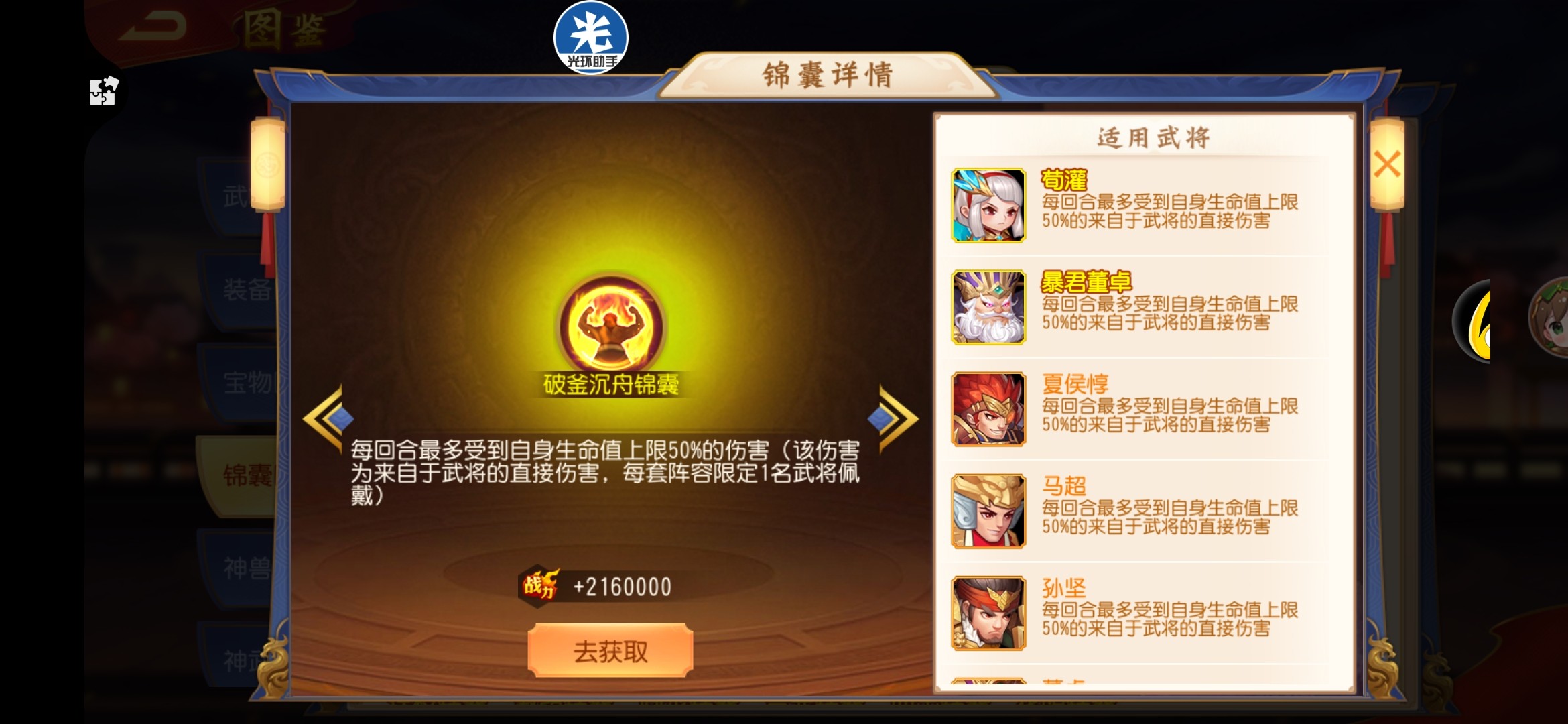 🔥肉将对于装备。宝物需求不大。但是锦囊破釜沉舟。同舟共济。奔雷马是必须品。下面几张截屏。对于一些新手来说。请认真观察一下说明。