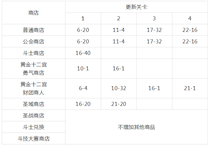 黄金十二宫勇气商店:消耗勇气勋章(获取途径:十二宫),可以购买指定斗士、神石、神之血、斗士碎片。