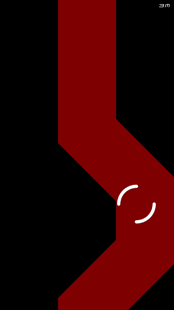 我们需要先连续按三秒屏幕才能开始游戏,当你进去游戏时如果松开了手指,圆圈并不会停留在原地,而是直接判定你失败,因为这个因素,我不得不先录屏后再截图。这个设定有点坑,手指必须得停留在屏幕上。
