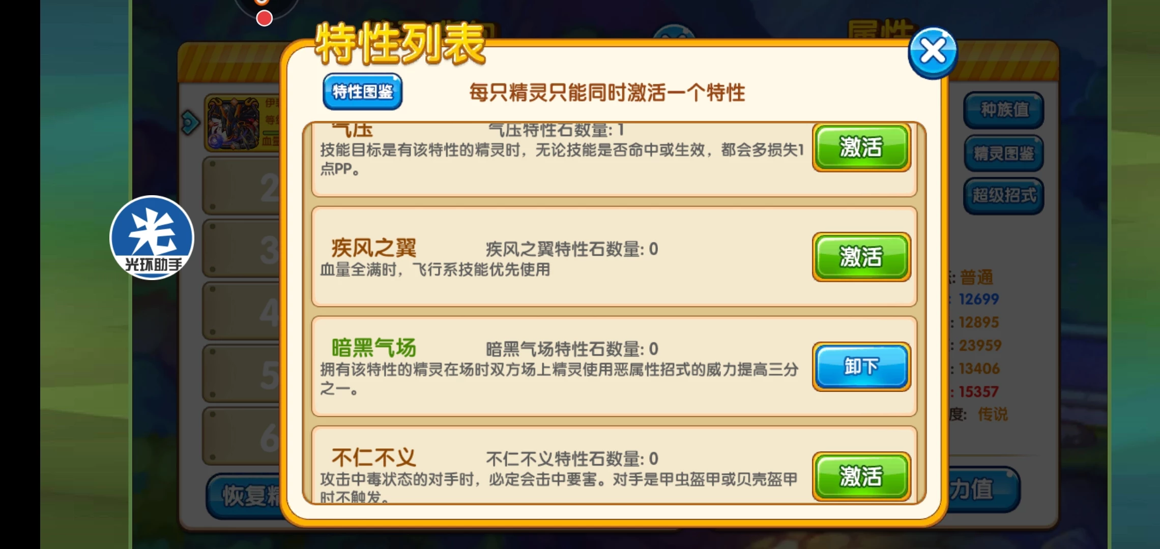 暗黑气场:拥有该特性的精灵在场时双方场上精灵使用恶属性招式的威力提高三分之一。
