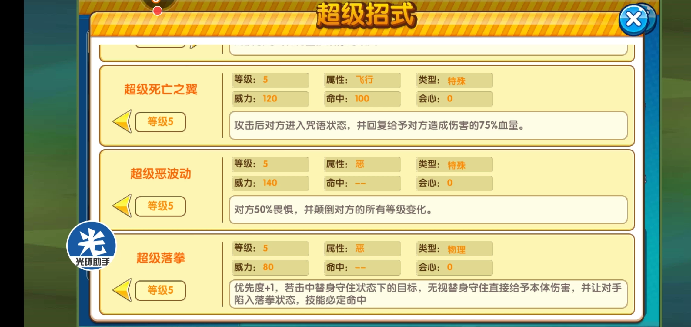 其他的超级恶波、超级死亡之翼都有逼退强化宠的效果,恶波虽然不是强行逼退,不过却可以用颠倒强化等级的方法另类逼退。最后的超级落拳估计就是针对企鹅了。