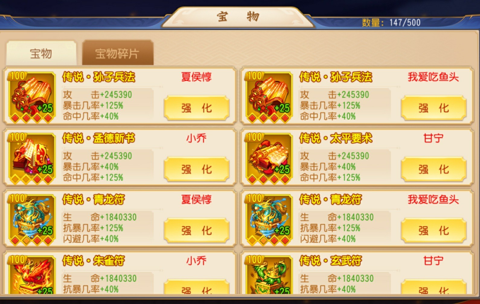 这样的细微如果不仔细查看,很难被察觉,所以结合武将的属性,就可以更好的分配宝物,特别是对新手玩家,可以提前规划好宝物的收集。
