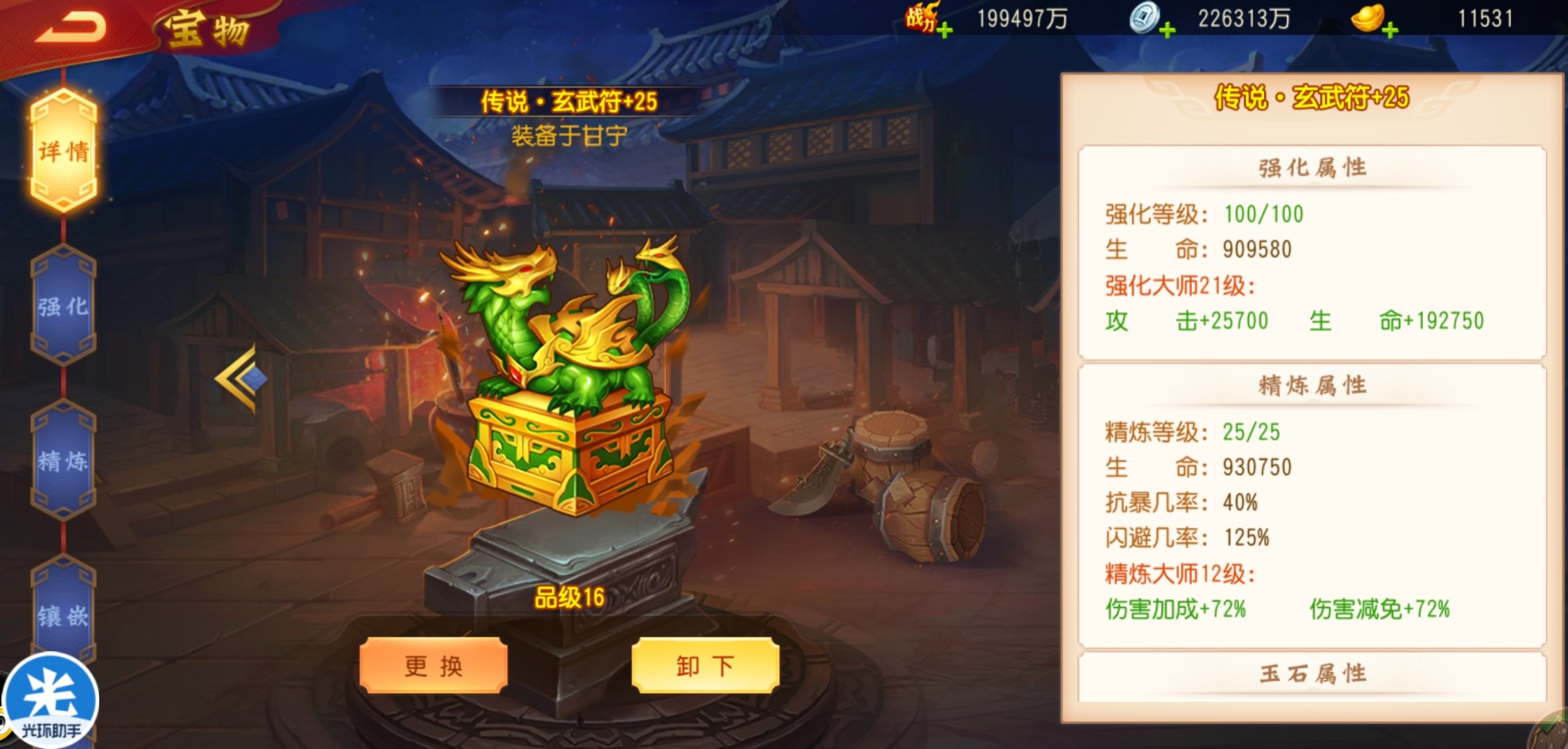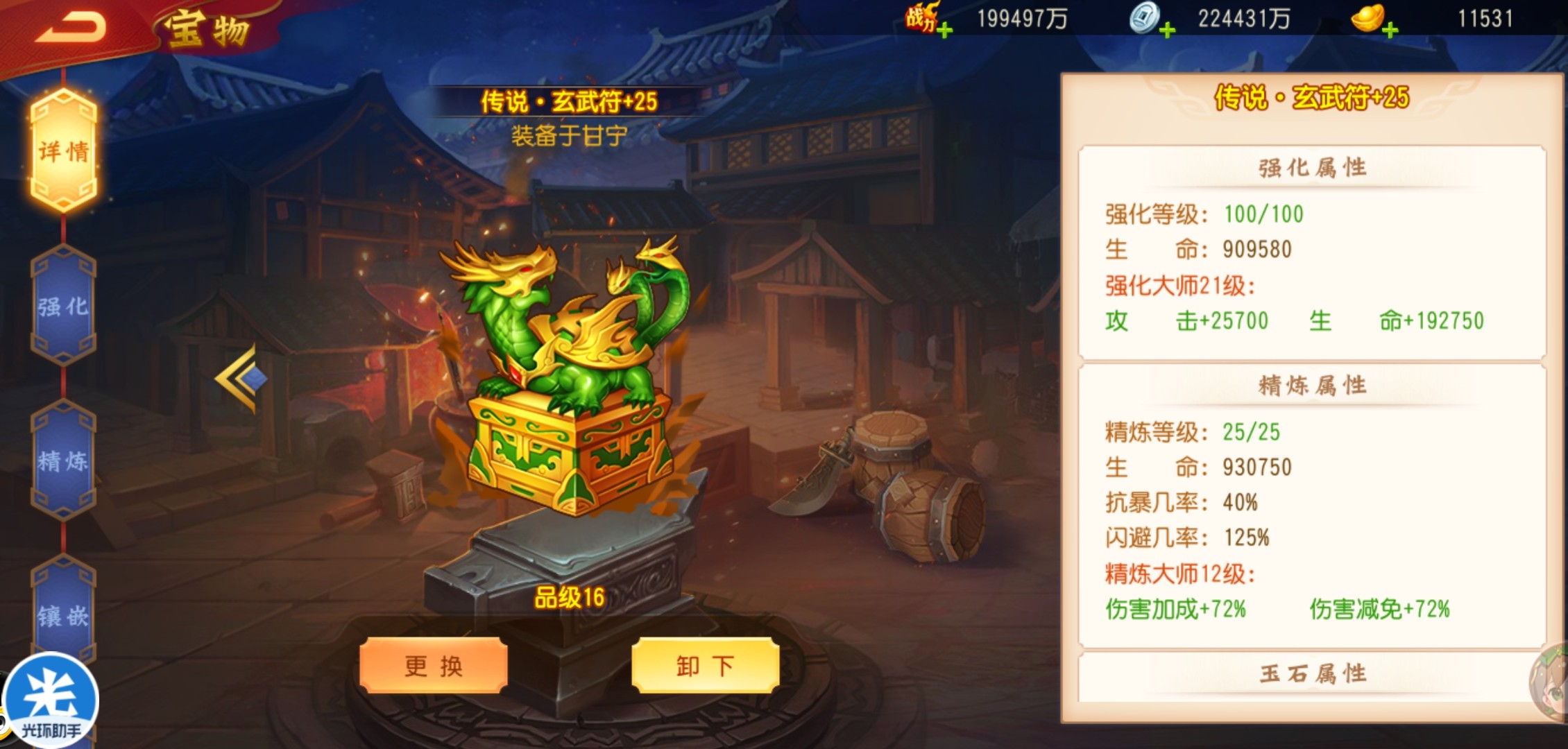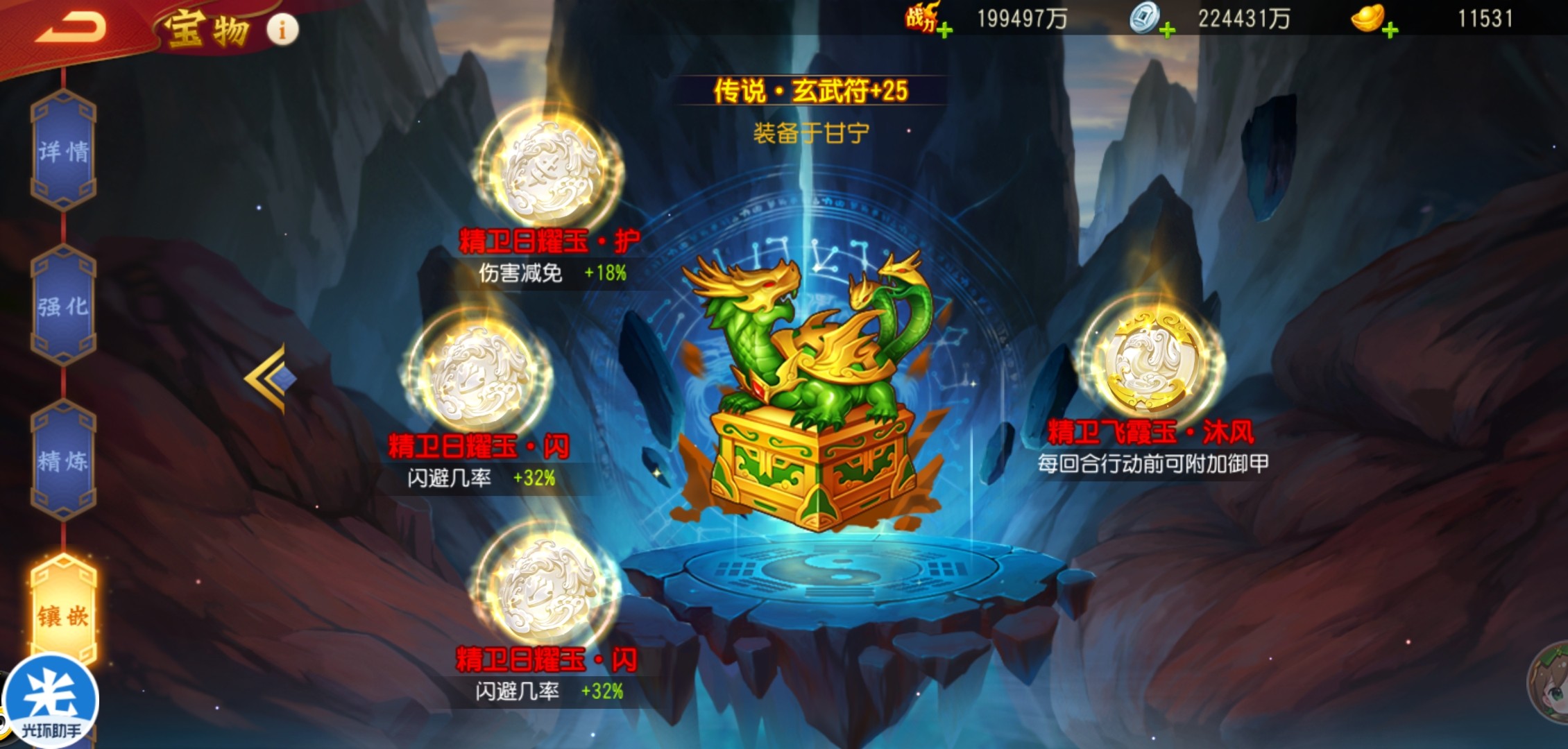 兵符(右边宝物):朱雀和玄武符,提升闪避