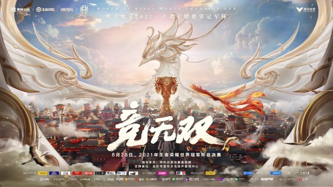 由官方年度合作伙伴iQOO、AMX、清扬、京东、58同城、上汽大众ID.4 X、外星人电解质水、交通银行信用卡,官方鞋服合作伙伴PUMA彪马,年度官方语音平台TT语音,行业合作伙伴自嗨锅、嘉实多极护、中国银联,官方团战卡联通大王卡,官方合作珠宝六福珠宝鼎立支持的电竞北京2021·王者荣耀世界冠军杯总决赛,于8月28日17:30热血开战!