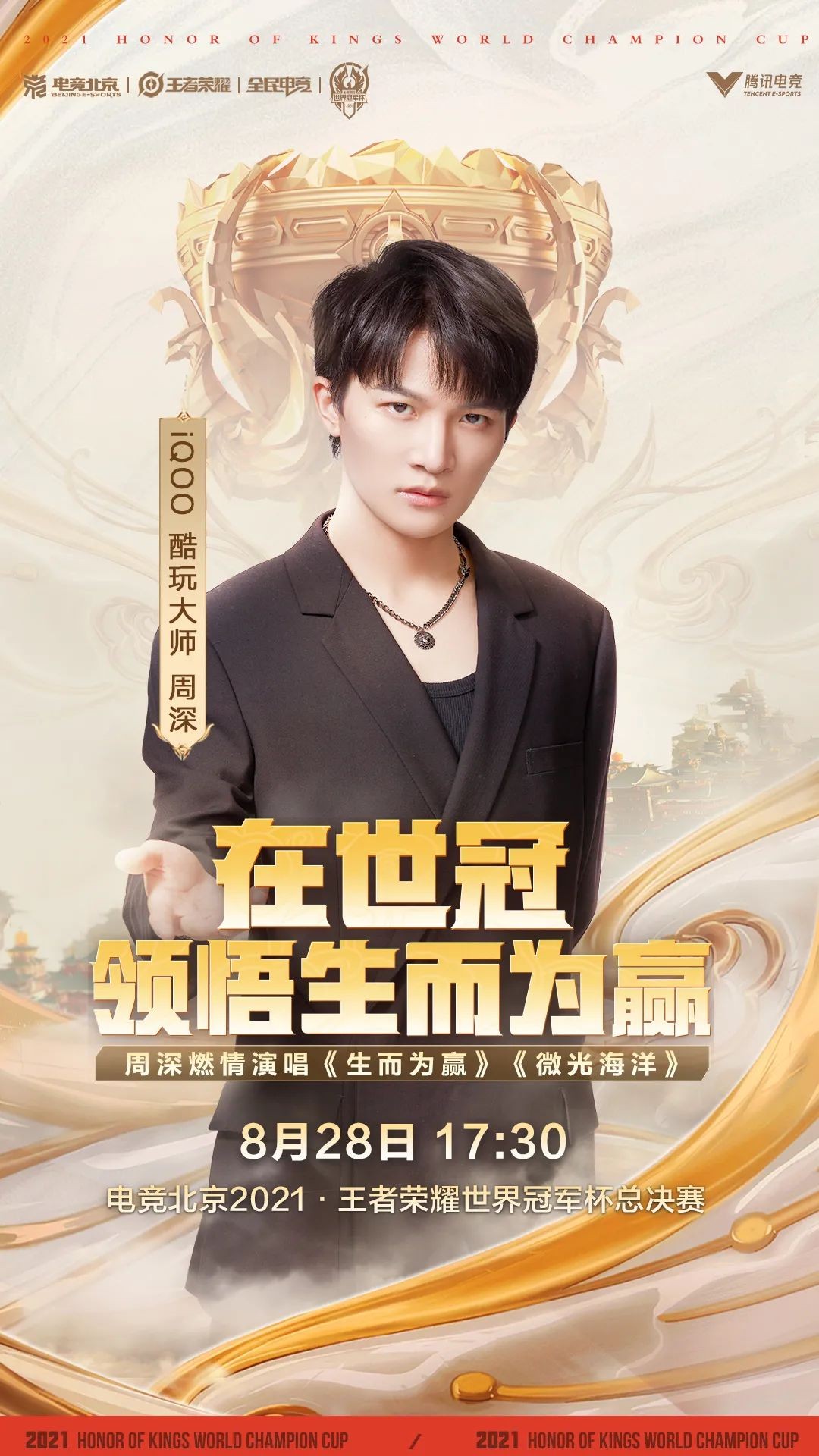 宝藏歌手周深将于世冠总决赛中场秀为大家倾情演绎《生而为赢》、《微光海洋》!让我们一起期待空灵绝美的歌声萦绕赛场,随着周深的嗓音一起感受生而为赢的电竞精神,见证世冠总决赛的精彩时刻!