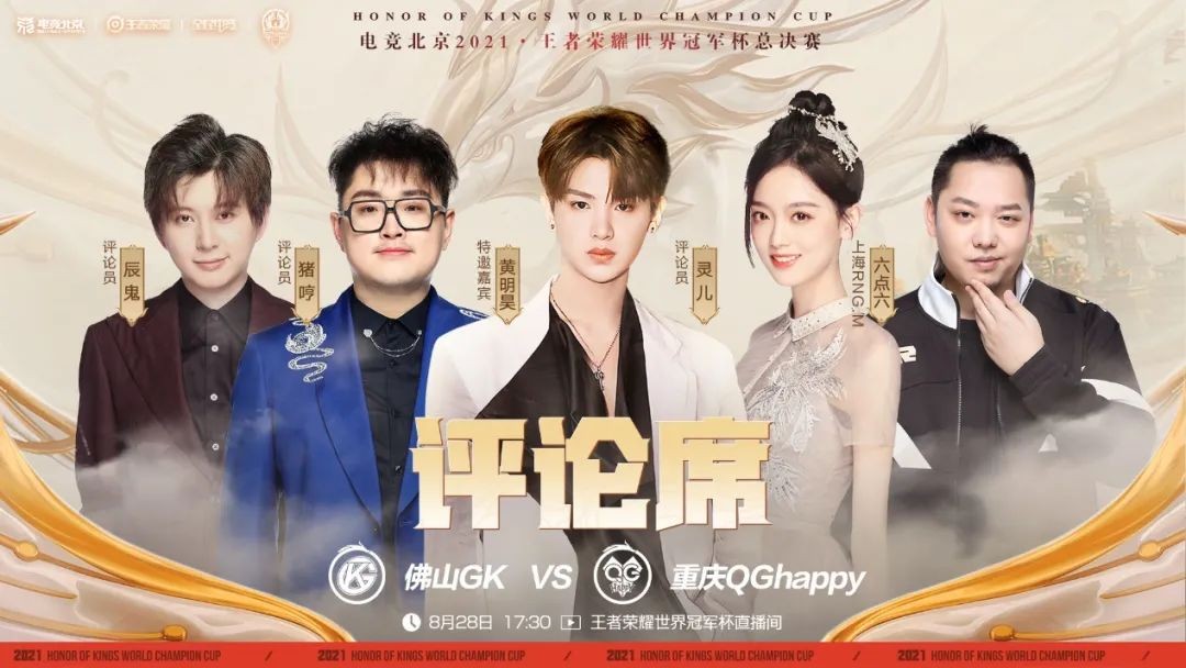 ▲电竞北京2021·王者荣耀世界冠军杯总决赛评论席为黄明昊、灵儿、猪哼、辰鬼、上海RNGM.六点六