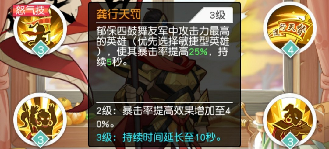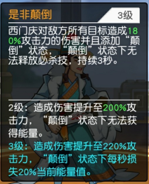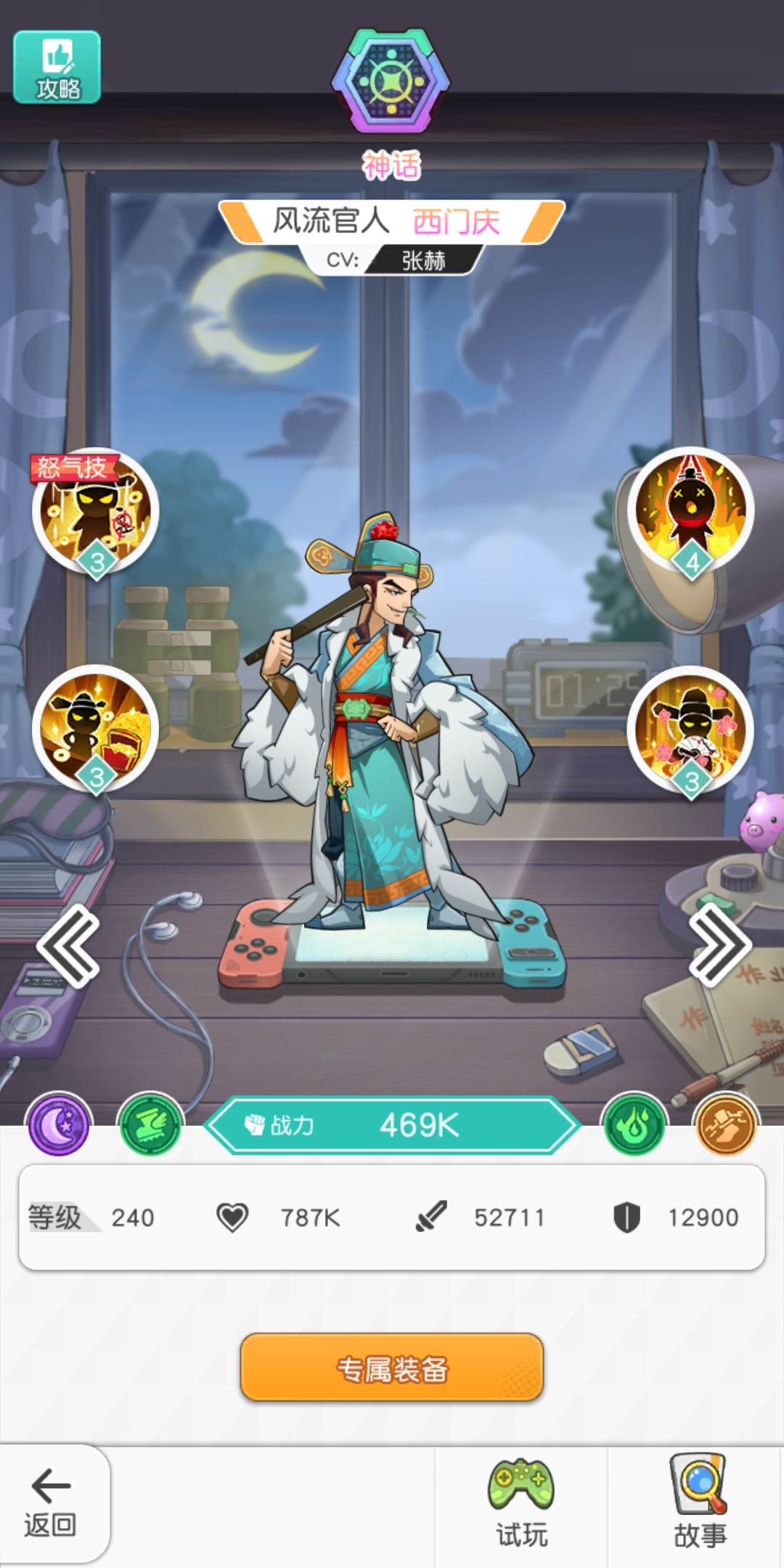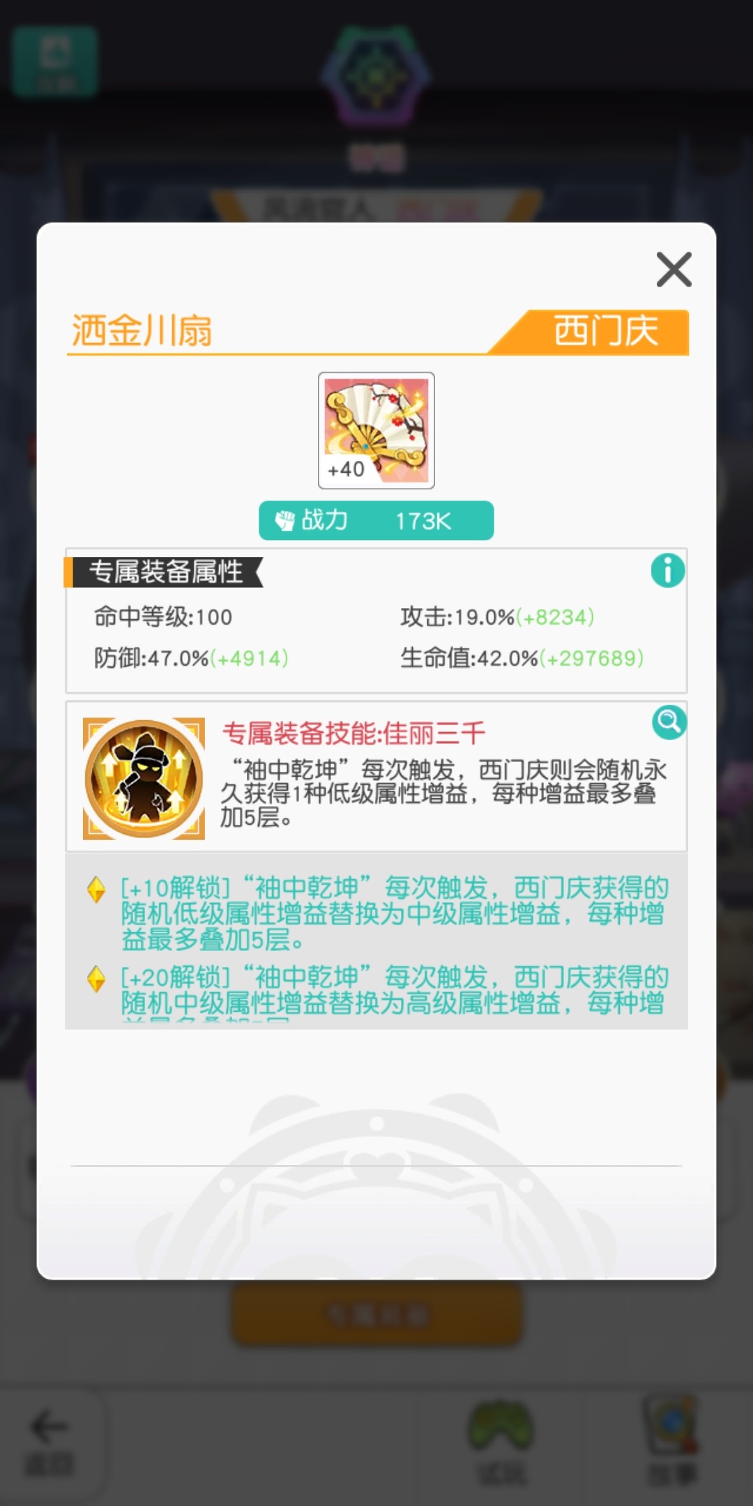 3.专属武器:10层和20层是递增属性增益的,30层相当于每释放一次怒技就能自身获得一种高级属性增益,每种增益最多叠加五层,这就相当于战斗时间越久,西门庆的状态就越牛,战力就越猛。