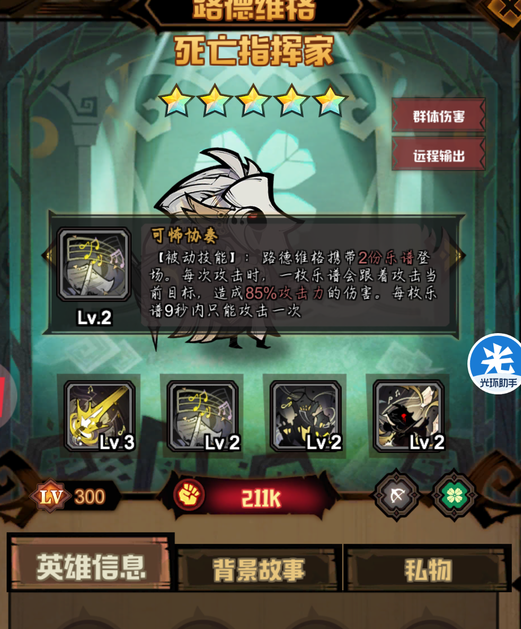 2技能也是非常常规的射手加伤害的技能,提升等级加的就是个输出和一个让4技能更强的乐谱。不高不低的输出我们只能说这是中规中矩,这里就不过多解释了。