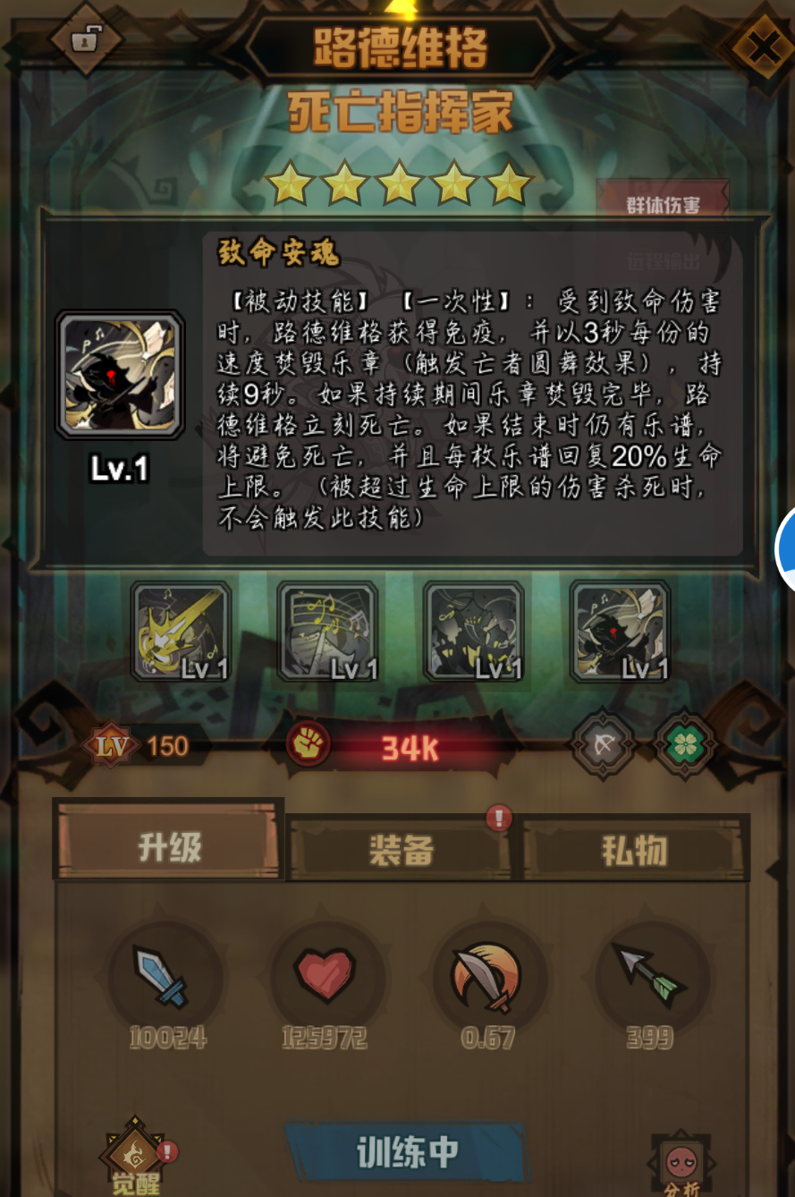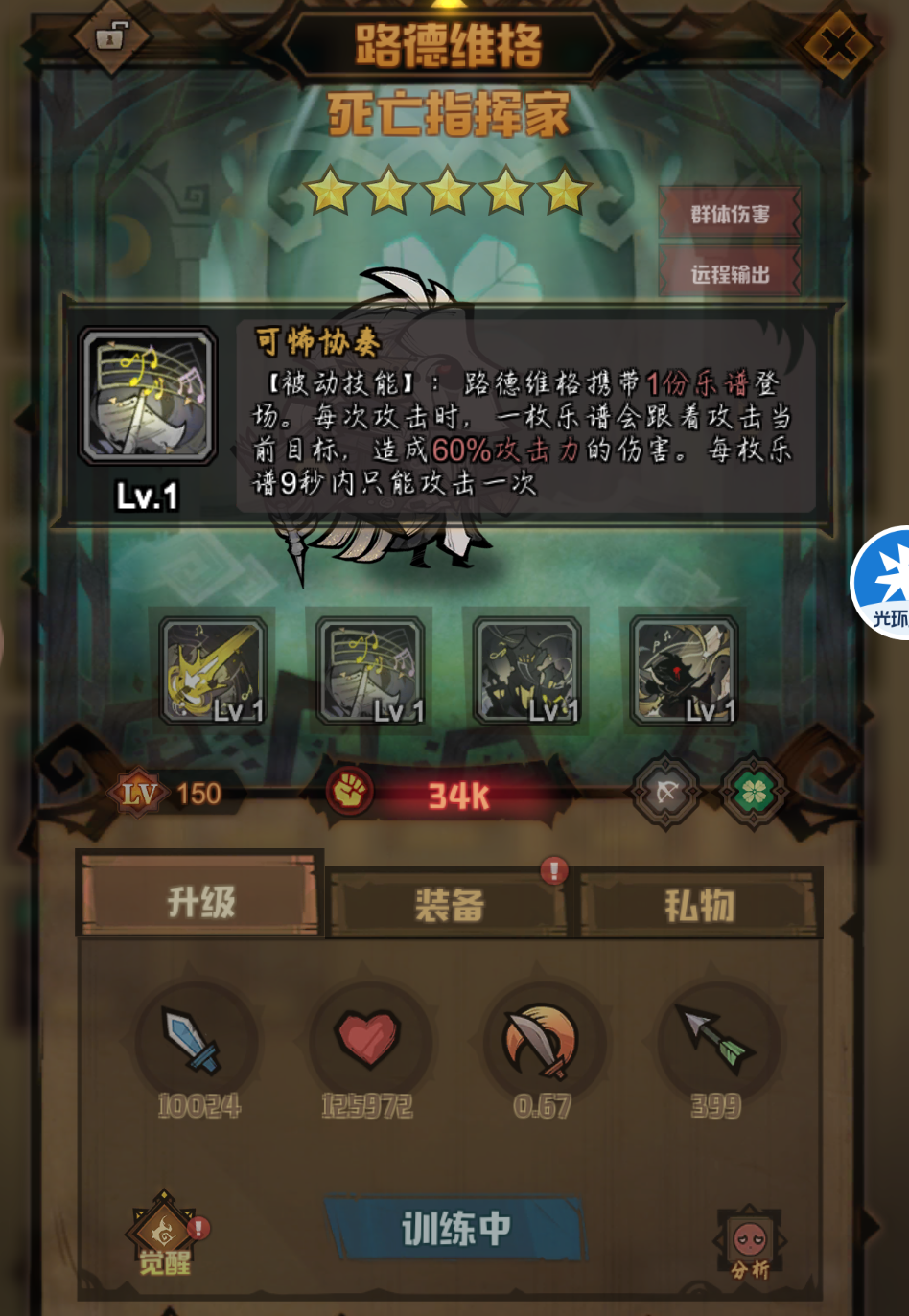 4技能是指挥家的保命技能,技能提升可以增加9秒无敌后每个乐谱的回复量。但是作为射手本身血量就非常低,这样的血量加成还是不太够看。