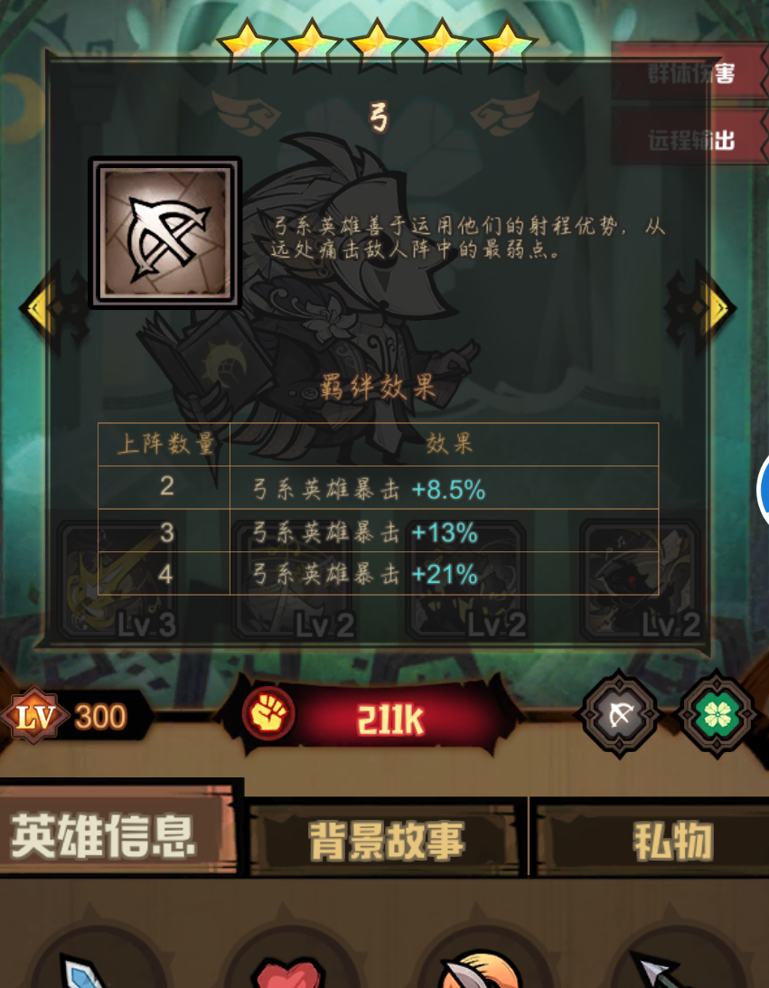 私物每用一次大招增加1暴击率,最多10点,再加上共鸣石,装备,共鸣石想达到稳定的控制暴击率难度并不大。所以指挥家与雷霆法王在眩晕流中都有自己的特点了,一个范围广一个控制时间技能比较足。关于这个阵容我们还要提到以下占星师的2技能。2级有35几率全体加15能量,也是能够让我们大招再次提前的方式。