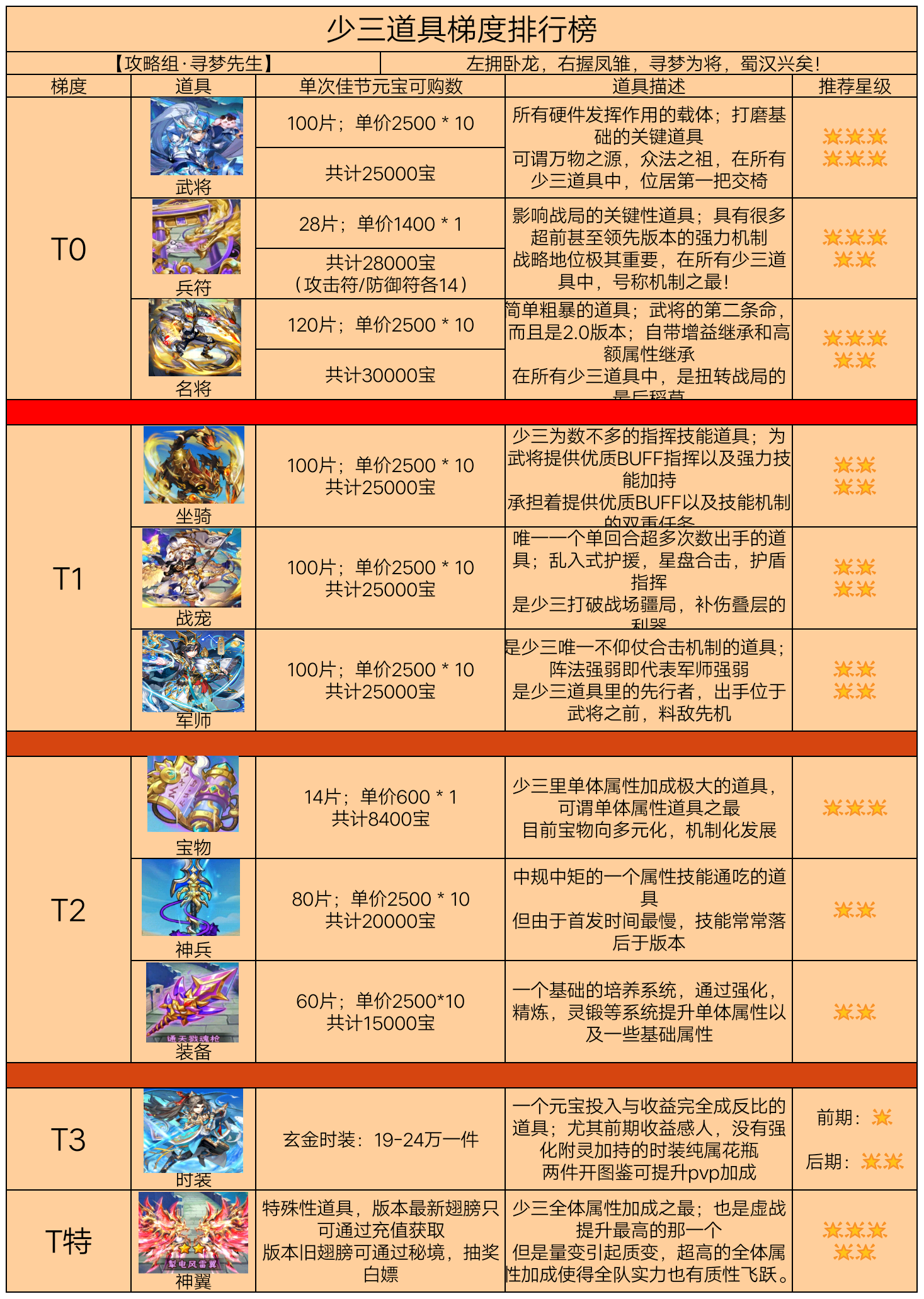 T2组道具,又称选择性购进道具,它的强度较之T0组(武将,兵符,名将),T1组(坐骑,战宠,军师)要弱很多,对战局的影响力不算很大,所以说再极端情况下(指元宝短缺时)可以舍弃。