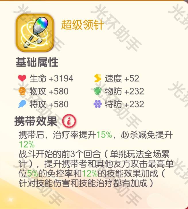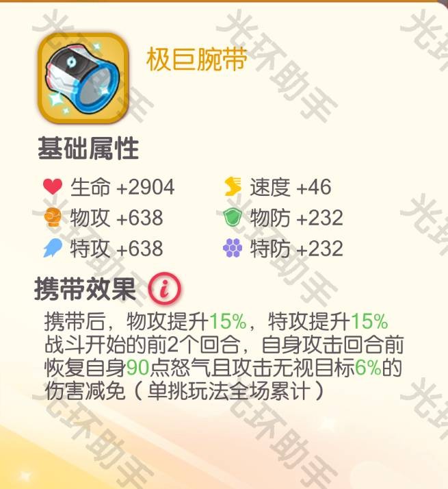 注: 虽然适合大部分输出精灵,但不适合超裂,超裂更适合用金剑、手环这类提供开局加速的橙携