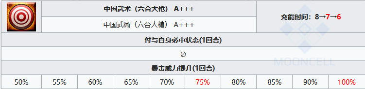 此技能效果为强化后版本,无敌贯通,蓝卡性能提升,获得大量暴击星,全面综合的技能,虽然有着必中,但多一个无敌贯通更稳,稳到能做到把所有伤害打出来的地步,蓝卡性能为最高幅度,还带有获取大量暴击星,可谓是李书文贴合自身情况所拥有的最强的技能。