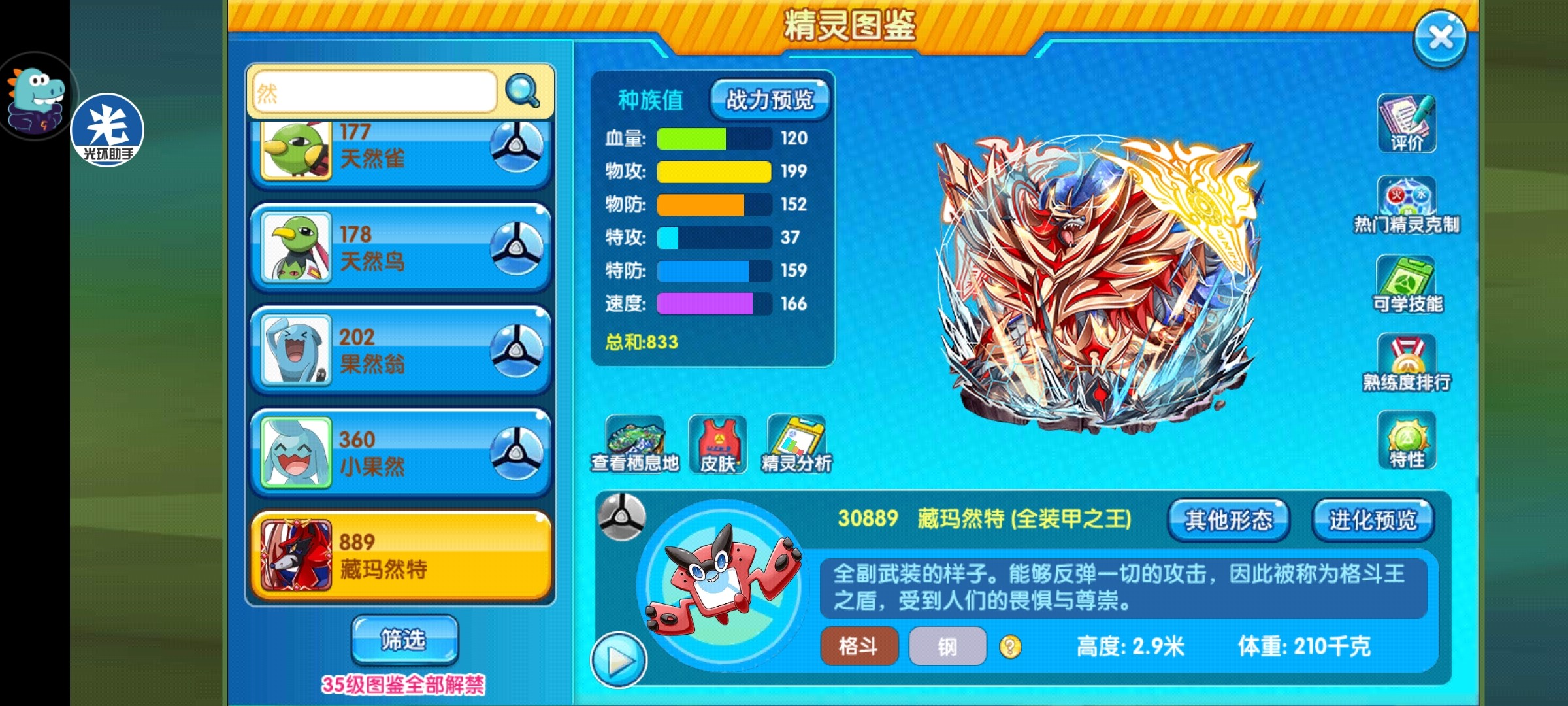 它的双防比一般的精灵要高,虽然叫做盾之王,而它作为盾却有高于部分物攻精灵物攻值,它的血量有120,而特性会让血量额外增加1.3倍,却让它的血量其实并没有想象的那么低,199的物攻以及166的速度让它并不单纯的作为盾牌来玩,有着更多的玩法 。