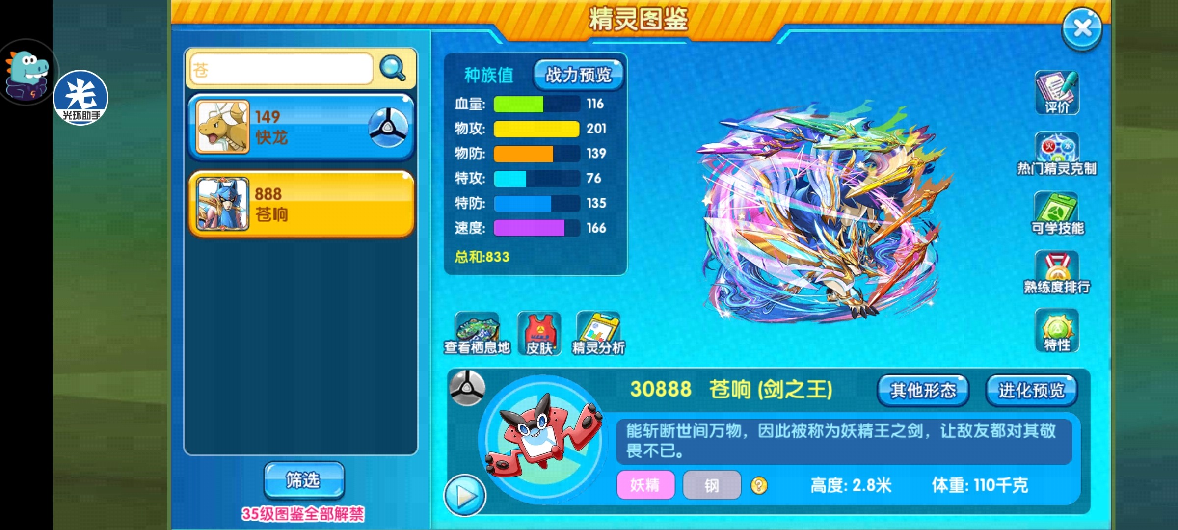 作为藏玛然特的姐姐,苍响一直横行到现在,在同一队伍可以让队伍里面有着更广的打击面,对部分盾之王解决不了的对手,进行压制,作为一直强势到现在的精灵,背包里面怎么能不放一只