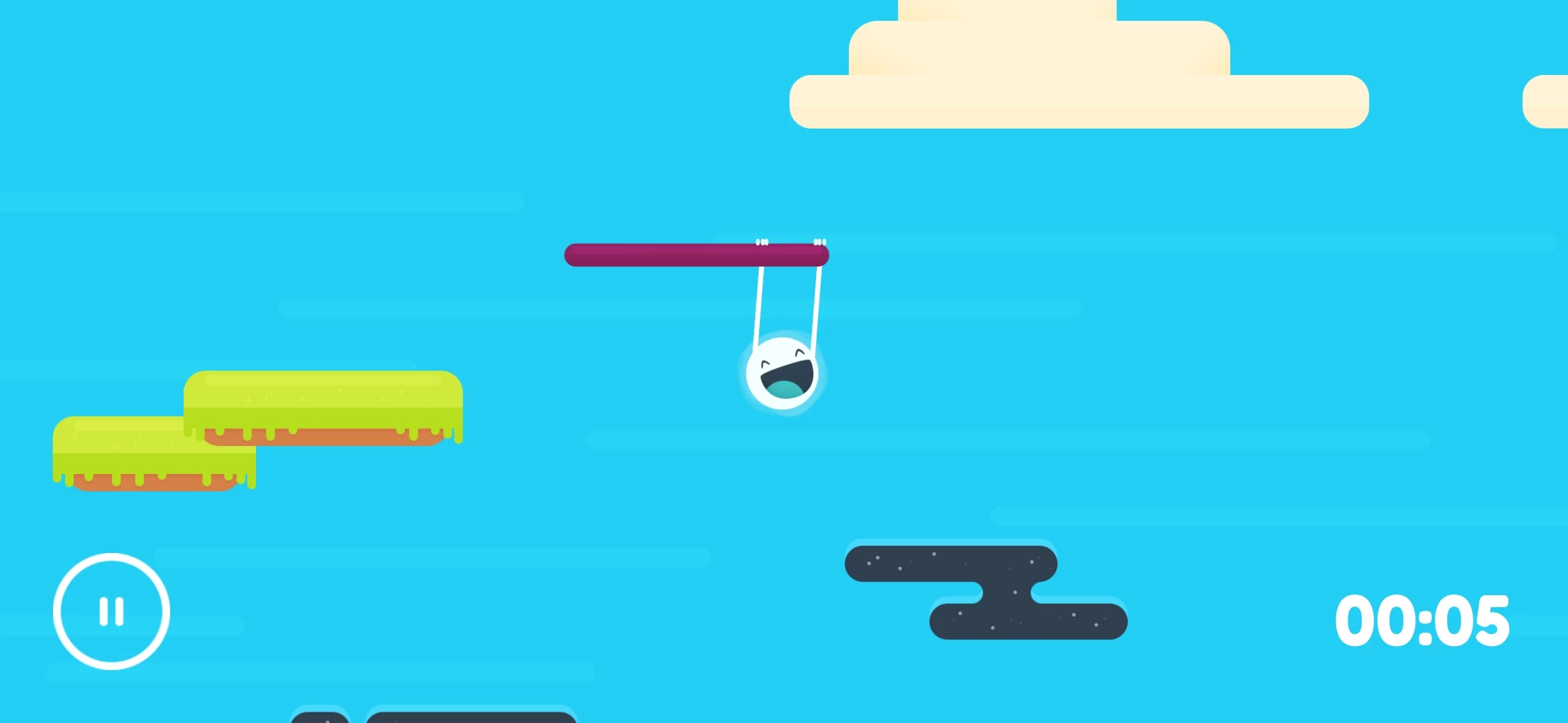 当你点击杠杆时。小球就会伸出它的手臂去抓住杠杆,利用杠杆为支点为自己获得加速度从而到达指定地点。这看起来容易,但实际操作起来机会发现,你的小球不是一下就弹射出去了,就是原地落下。