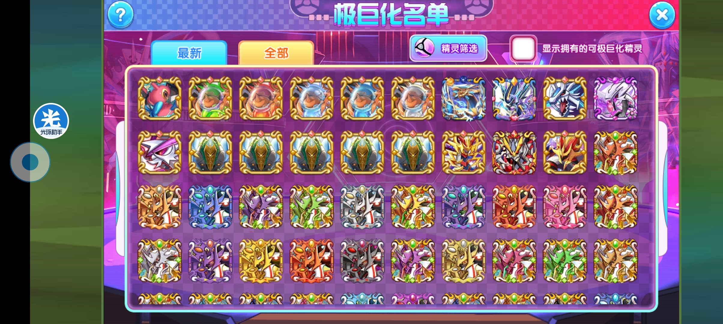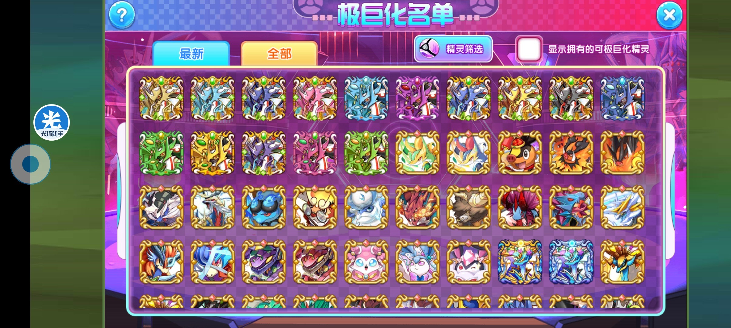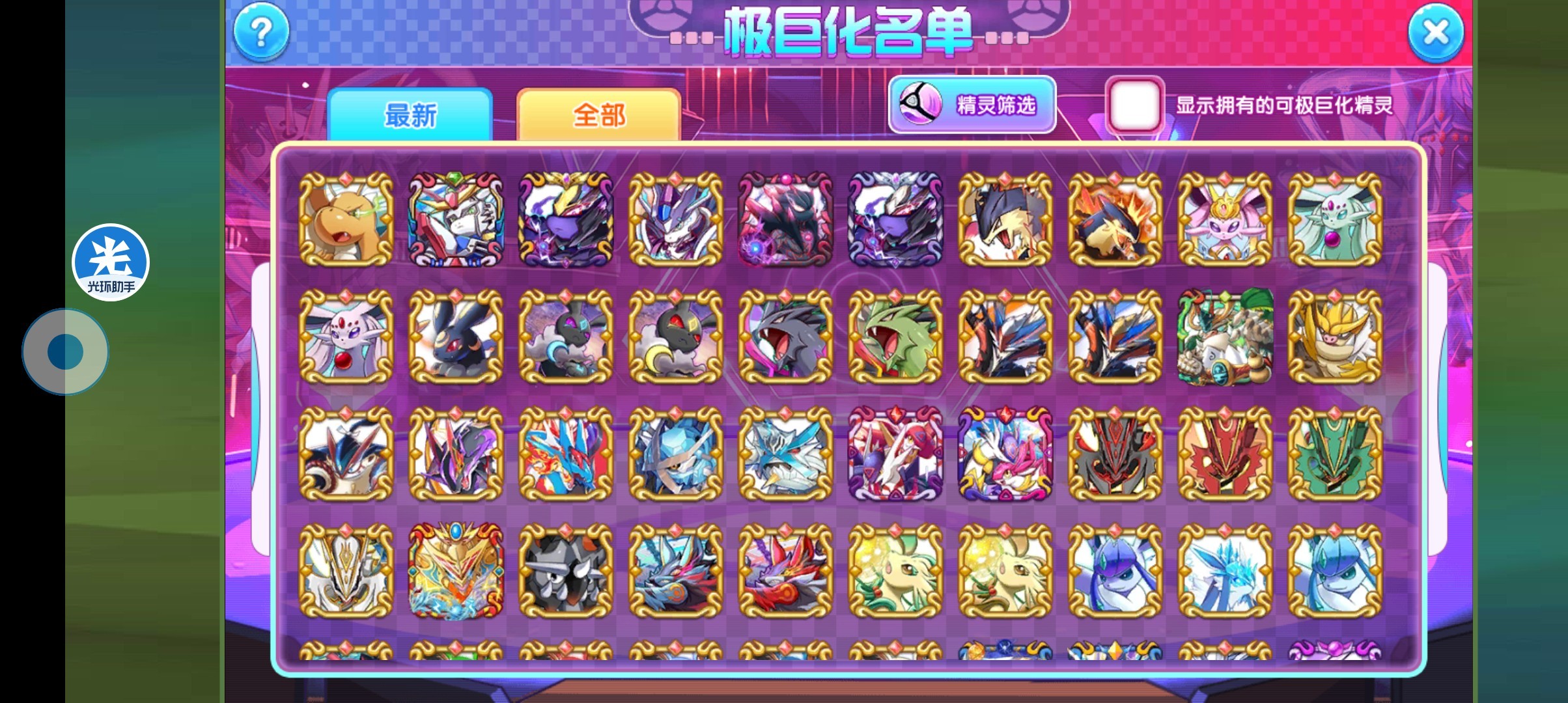 大家可以看到,这是所有目前可以极巨化的精灵,未来会随着版本更新一点一点,加入新的精灵