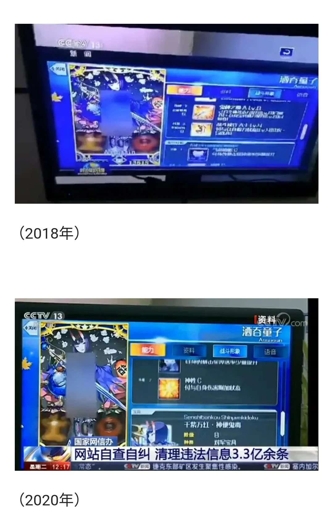 无独有偶,在2019年,酒吞童子再次登上央视,又是过于暴露;2020年,酒吞又双叒叕喜登央视。