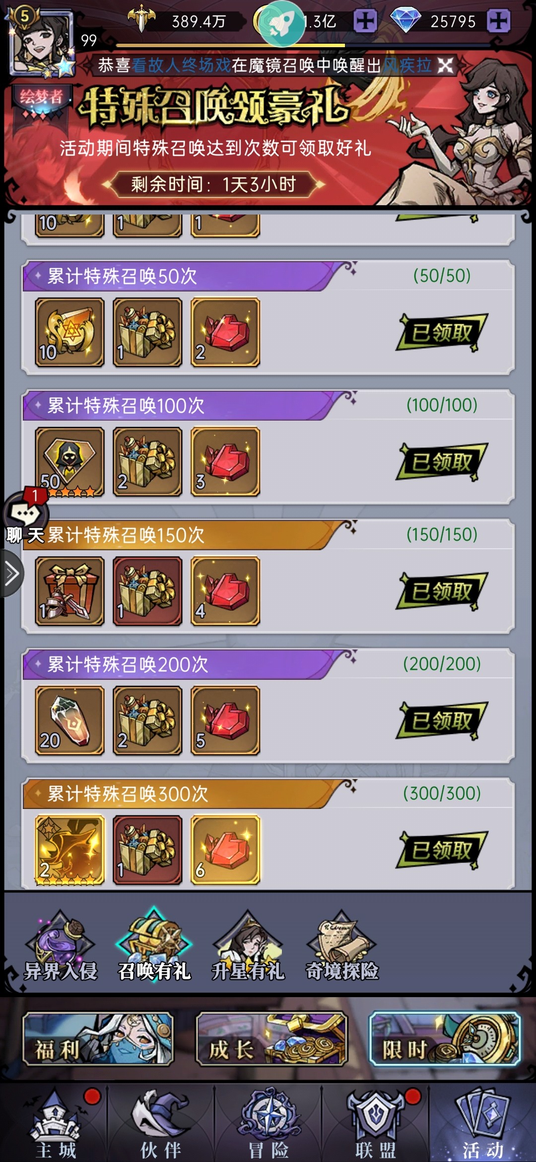 前期可以随意抽奖,但是每个月会有一次抽奖活动,到达一定次数会获得大量奖励,最高档为300次,所以一定要提前攒,避免到最后无法领到最终奖励