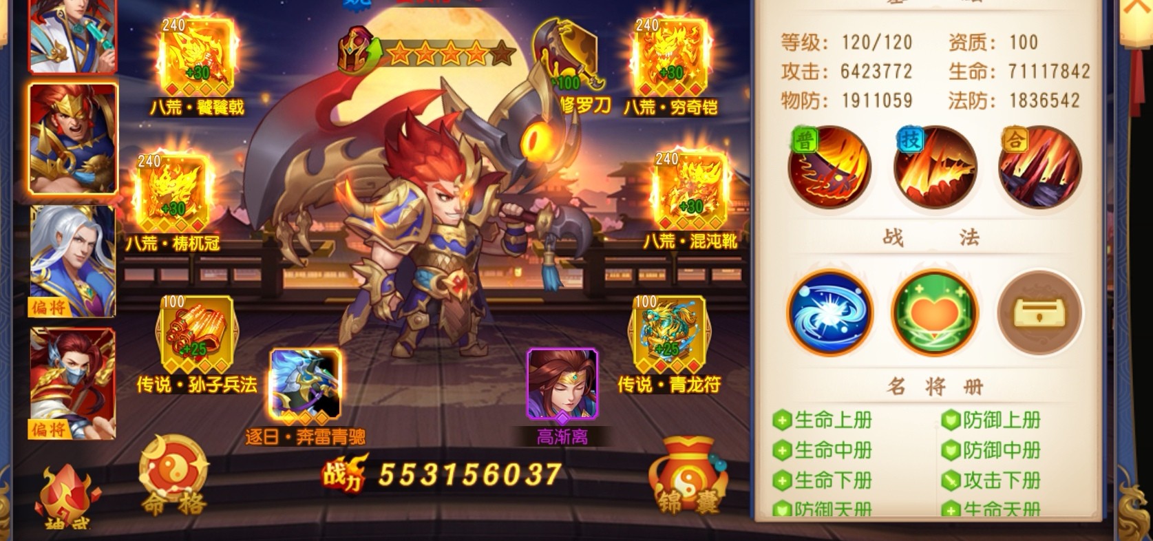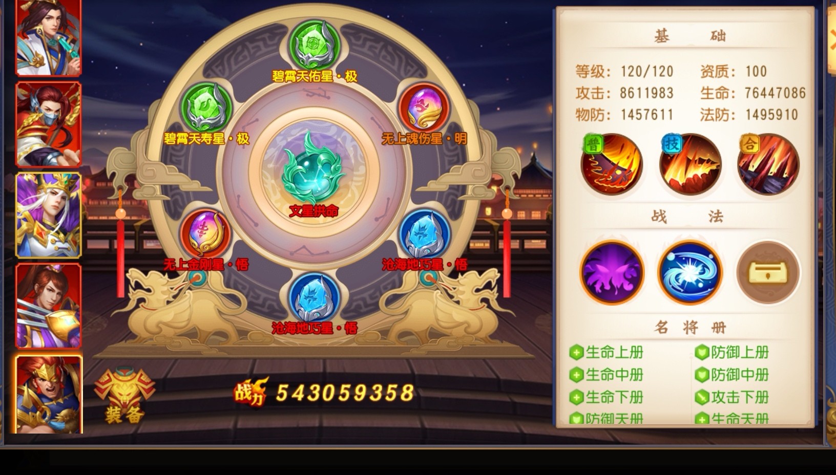 说真的。命格和将星对于平民玩家来说。好的命格和将星还不会轮到夏侯惇。因为一个主要输出将就足够你去收集的。想激活高级命格。就需要高品质的将星。而高品质将星需要低品质将星一层一层合成上去。操作简单是没错。但是需要的紫品质将星需要非常多。。下面给各位玩家提供2张截屏。你们这样收集就不会有错。