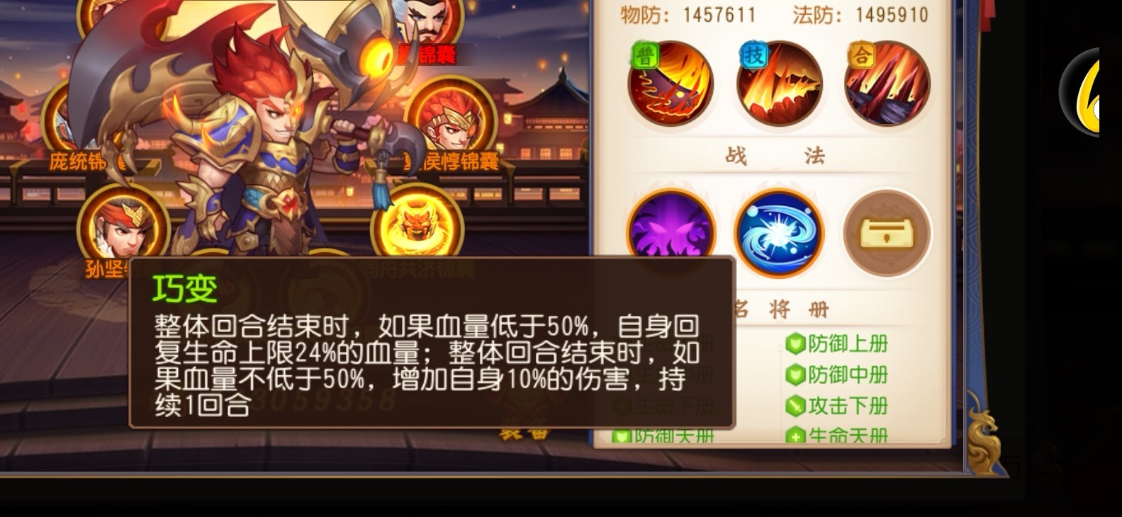 由于是为了反伤对手。所以为了保证夏侯惇的续航能力。需要战法不断回血。可以不断反伤对手。