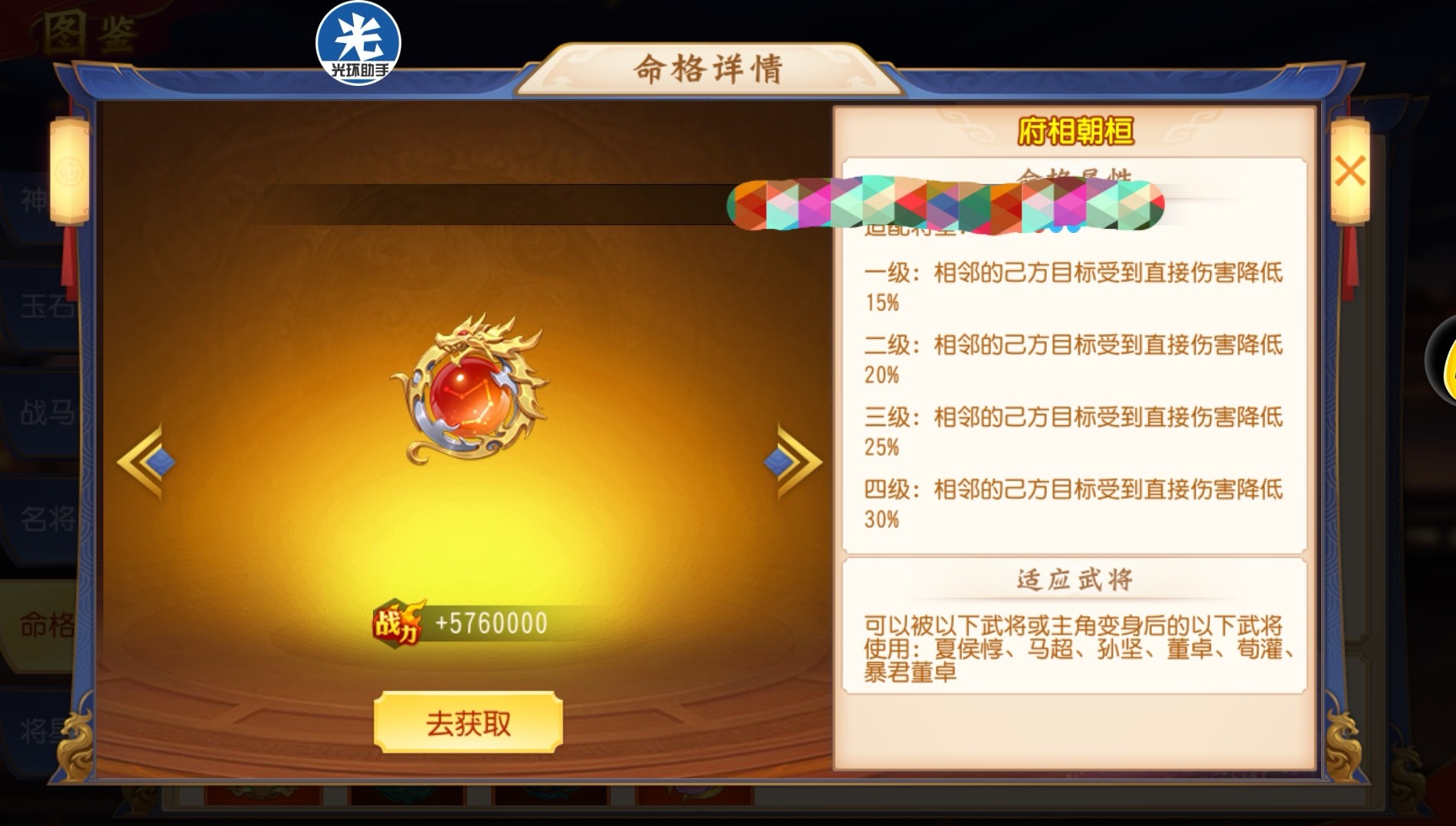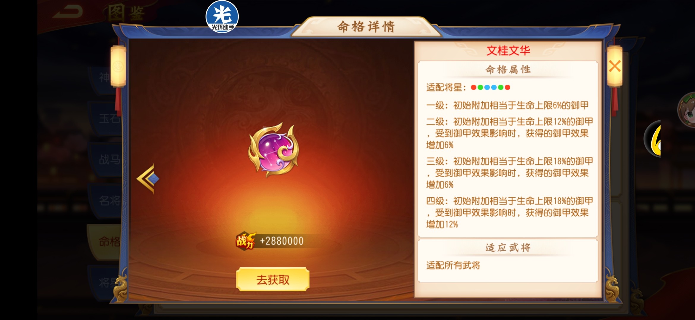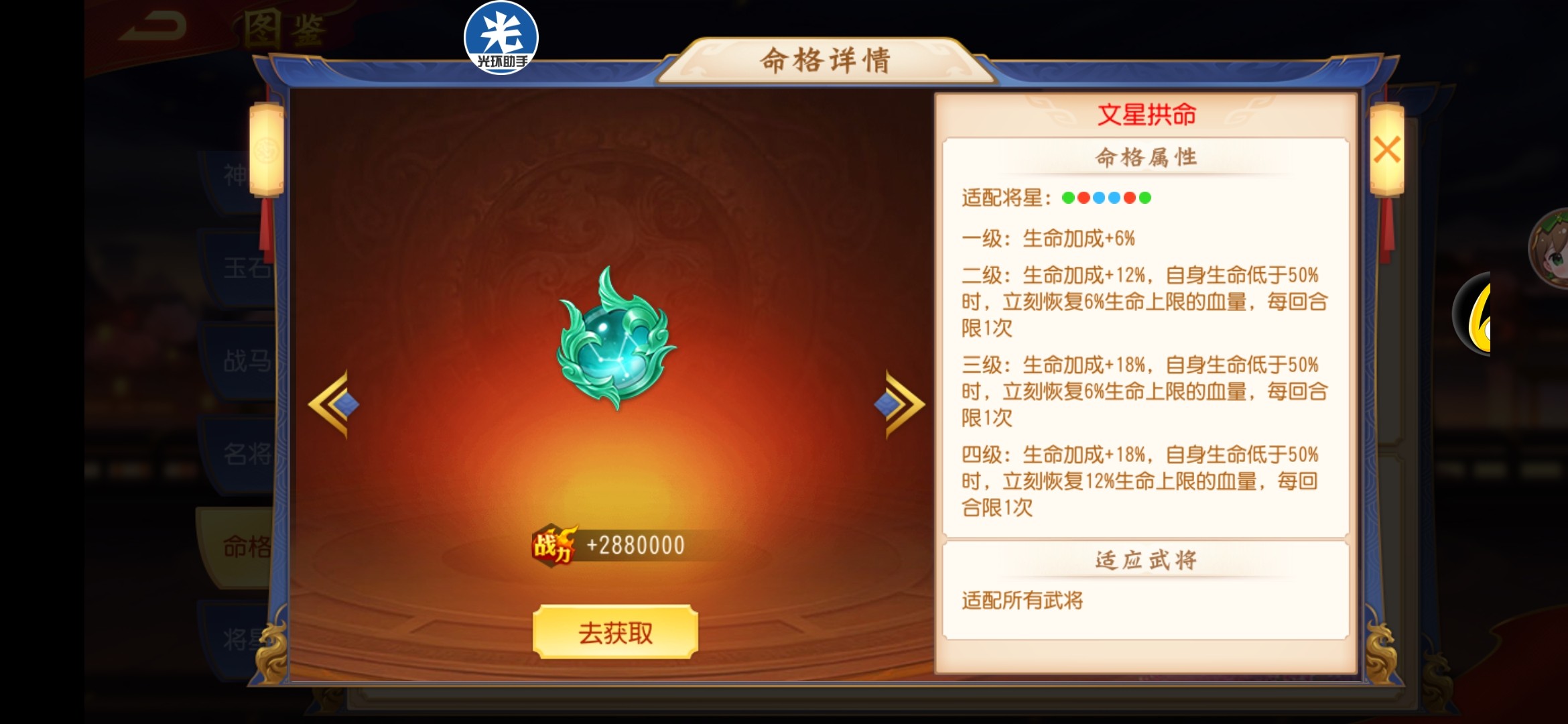 普通玩家。主要以提高生命。恢复生命。提高御甲为主。下面这2个命格都适合夏侯惇的。