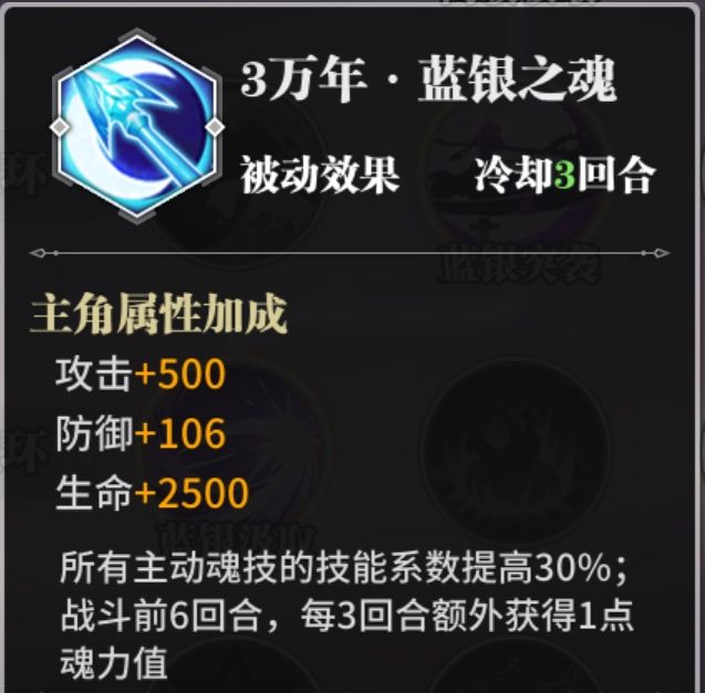 蓝银之魂是只有前6回合每三回合生效一次,就是只生效2次,蓝银之灭可以生效到满回合,我觉得带蓝银之灭比较好