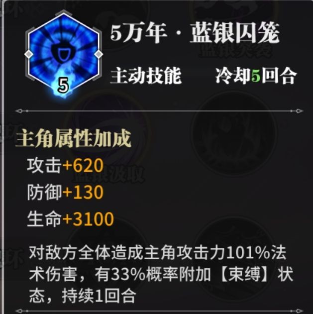 第二个选择蓝银之刺或者蓝银寄生,由于第三回合回复一点魂力值,刚好可以提前释放魂技。最后蓝银囚笼,大概是第6回合左右概率性打出束缚效果,限制对方技能释放。