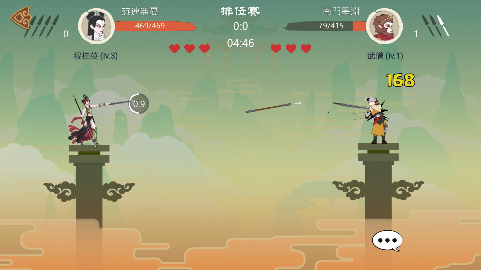 今天给大家带来一款休闲的投掷类游戏《标枪王者》一款“互射”游戏,玩法和奥运会投标枪那个有点类似,那个都是比距离的,而我们这款游戏简直就是玩命,是两人互扎,还越扎越得劲,我想是有多大仇啊,站这山顶是互射的,看着都慌。