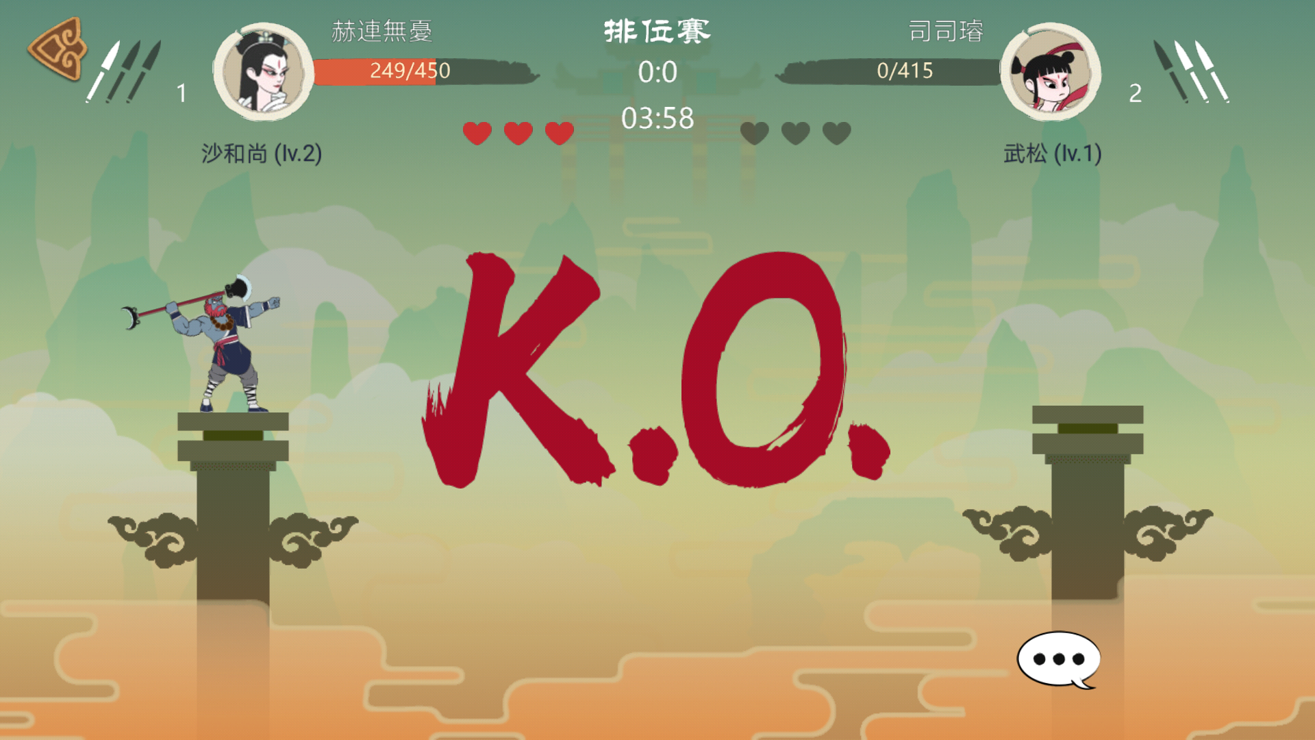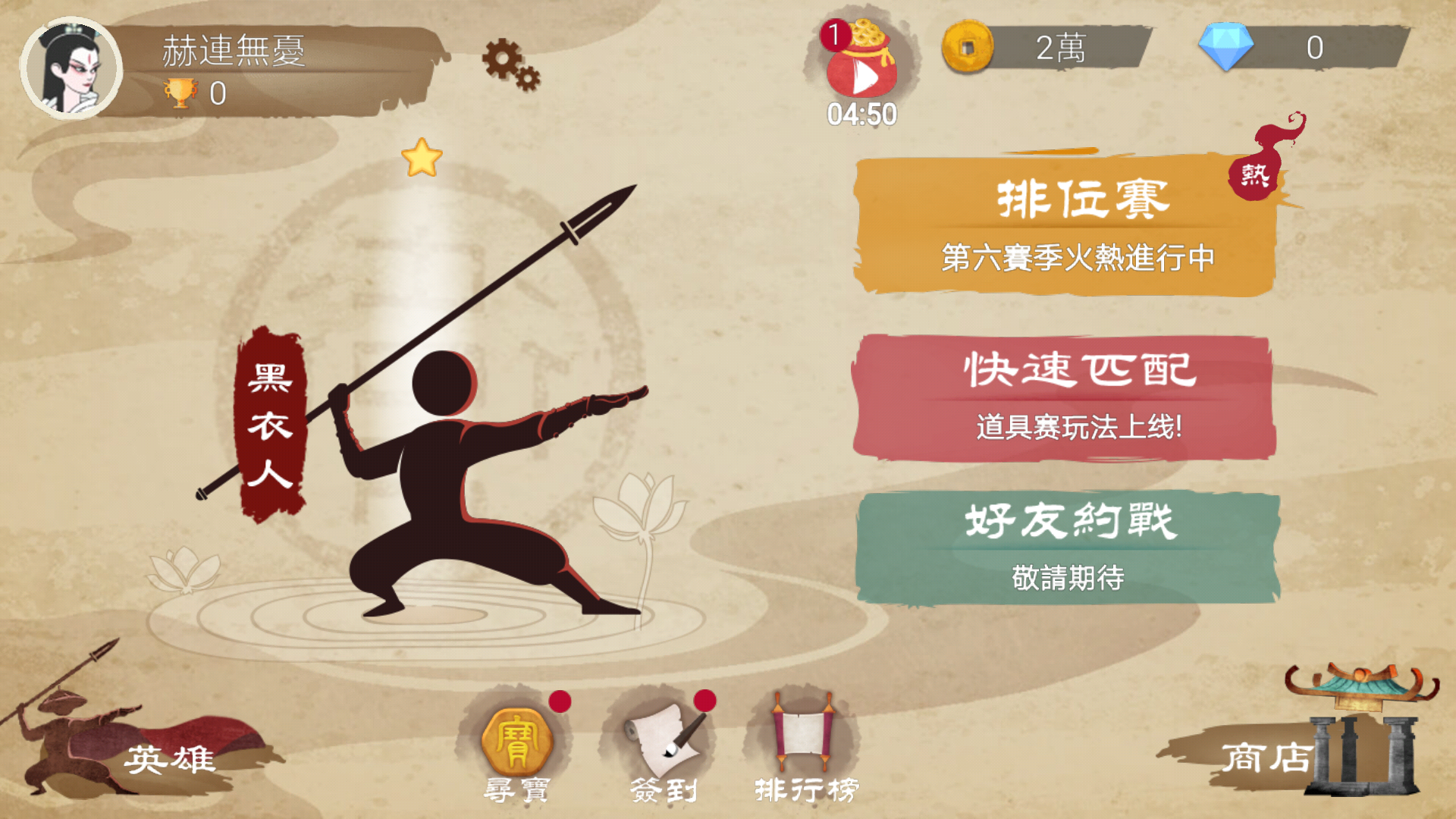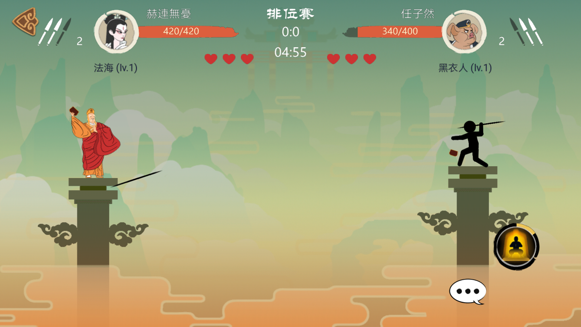 比较有意思的是玩家互丢的武器相互击中时还能有抵消的效果,但有的时候如果角度不好的话可能还是会造成伤害。这款游戏还是比较靠技术的,需要看玩家的手感。还是多玩玩拿小黑衣人慢慢练练手感吧,等到金币或者钻石够了赶紧购买新的角色。