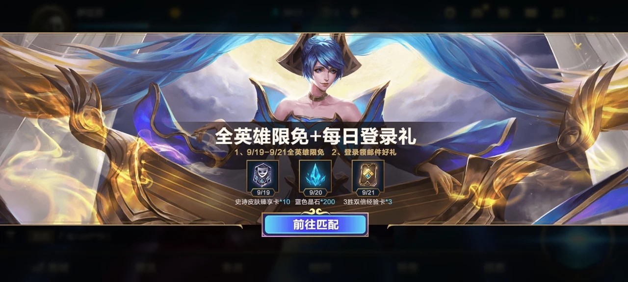 · 9月21日登录即可领取3胜双倍经验卡*3