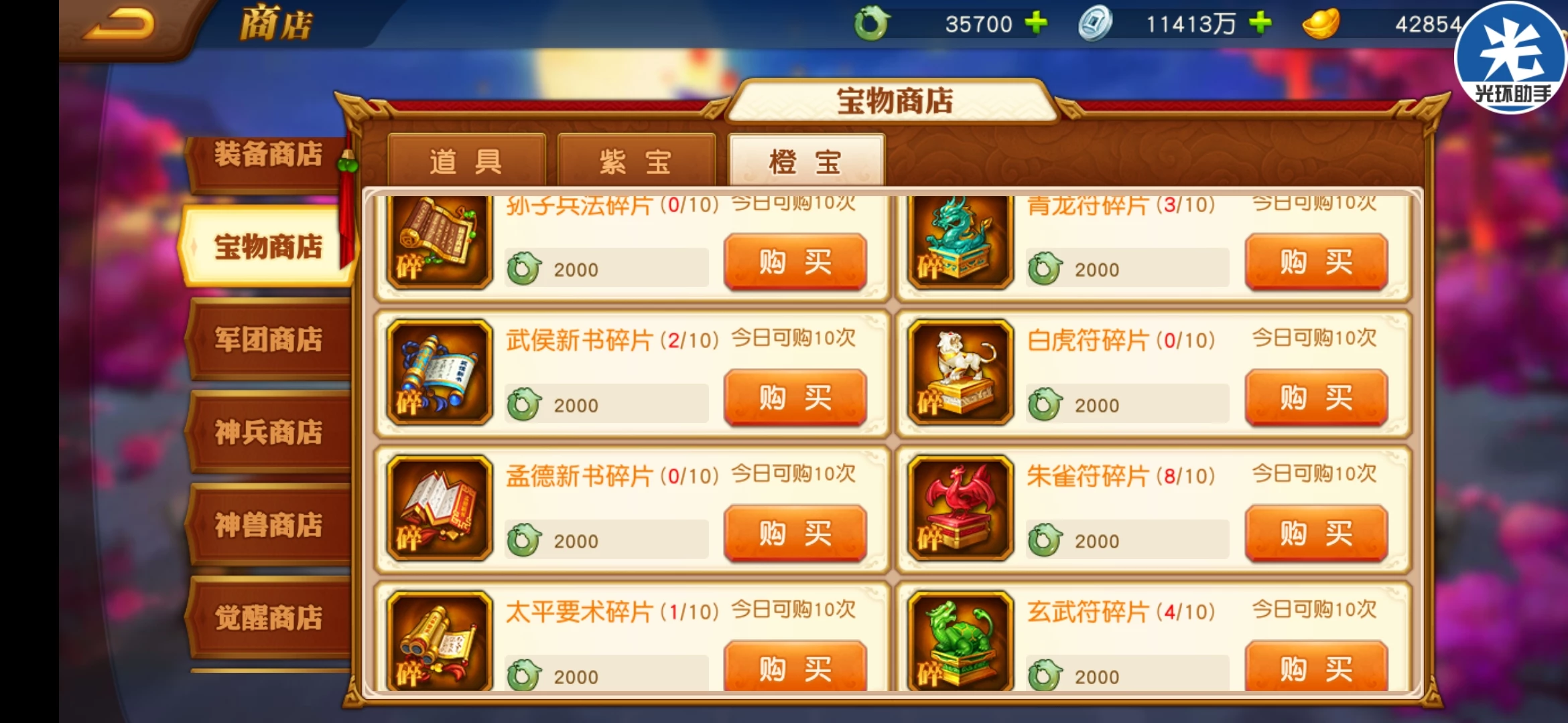 宝物商店主要兑换橙色宝物