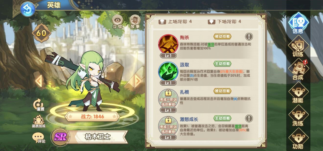 7:枯木卫士(sr卡,森林阵容的专属肉,在“试炼之塔”有优秀表现)