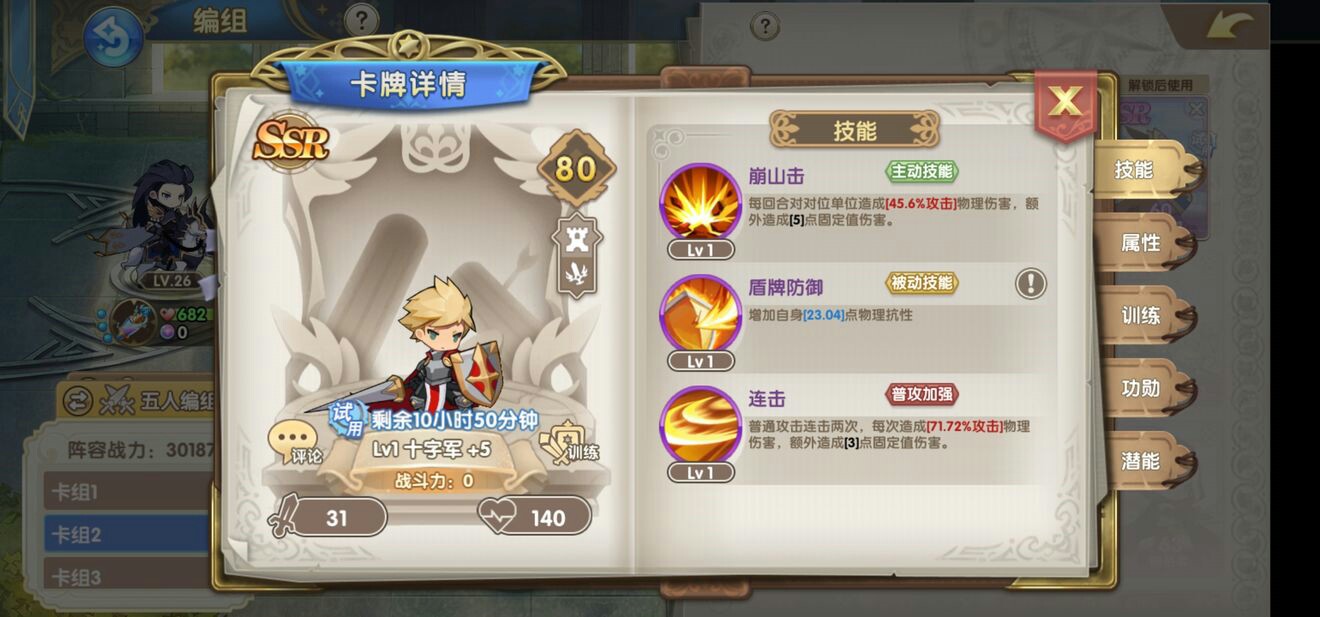缺点:升分慢,无减伤,适合开荒,但不适用于冲榜开荒。(前期只有试用卡,完全体要5天)